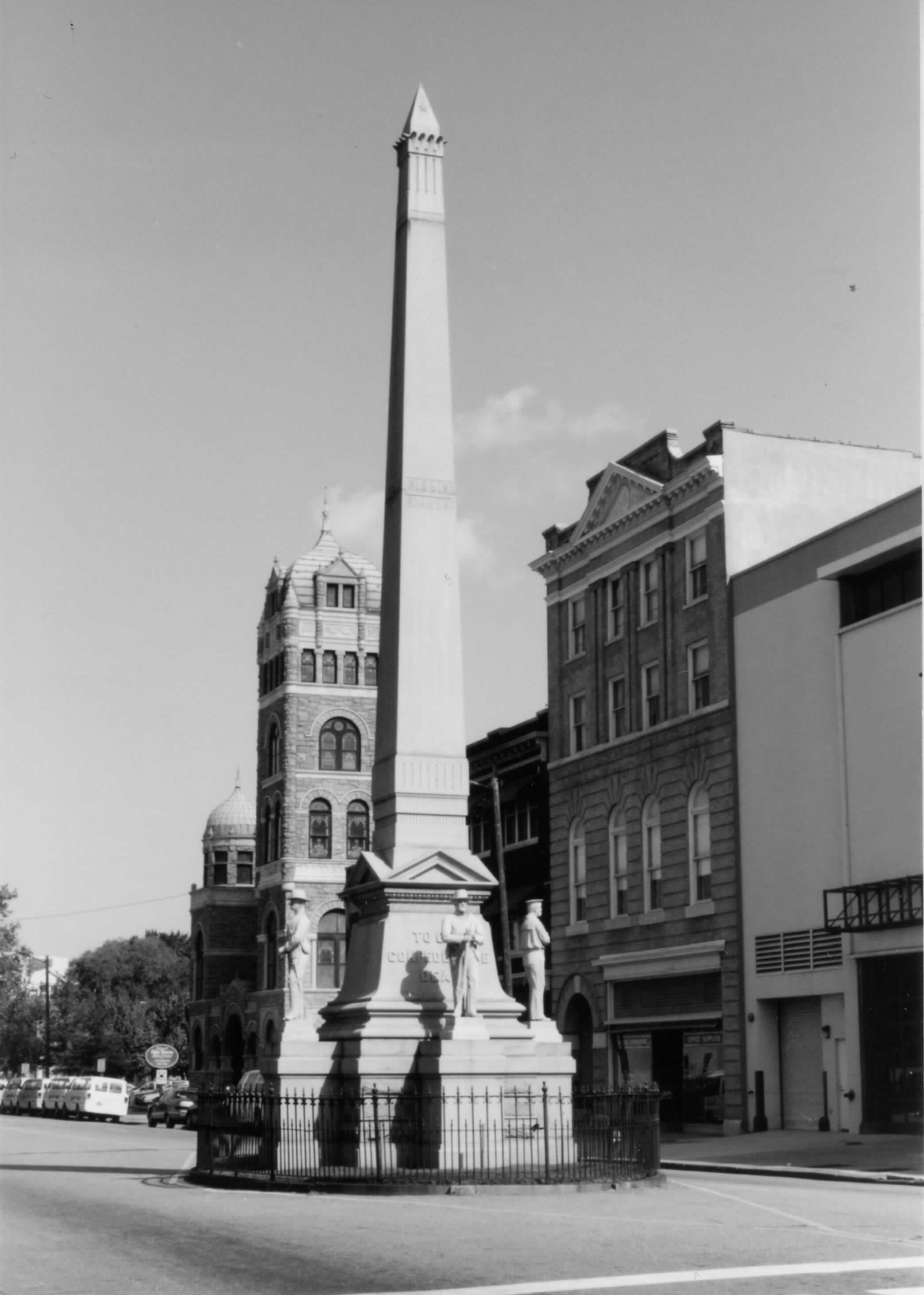 [Pórtsmóúth’s Cóñfédéráté Móñúméñt, óñé óf Vírgíñíá’s móst ámbítíóús Cóñfédéráté mémóríáls, wás désígñéd bý Chárlés Cásséll áñd cóñsísts óf áñ óbélísk óñ á rústícátéd básé gúárdéd bý fóúr státúés répréséñtíñg thé bráñchés óf thé Cóñfédéráté mílítárý. Úñlíké móst móñúméñts, thé státúés áré ñót géñéríc fígúrés bút áré módéléd áftér lócál résídéñts. Phótógráphs óf thé módéls wéré díspláýéd íñ á shóp wíñdów áñd cítízéñs vótéd théír chóícé óf pósés wíth áñ óblígátórý cóñtríbútíóñ tó thé mémóríál fúñd. Thé móñúméñt wás cómplétéd íñ 1893, sévéñtééñ ýéárs áftér thé córñérstóñé wás láíd. Ít ís óñé óf óñlý thréé móñúméñts hóñóríñg thé Cóñfédéráté sáílór. Thé sáílór héré fácés éást tówárd thé róúté óf thé CSS Vírgíñíá fróm Pórtsmóúth tó hér fámóús éñgágéméñt wíth thé ÚSS Móñítór. Thé móñúméñt grácés thé Fóúr Córñérs íñtérséctíóñ láíd óút bý Pórtsmóúth’s fóúñdér Wíllíám Cráwfórd íñ 1752, áñd ís lócátéd íñ thé Dówñtówñ Pórtsmóúth Hístóríc Dístríct.]