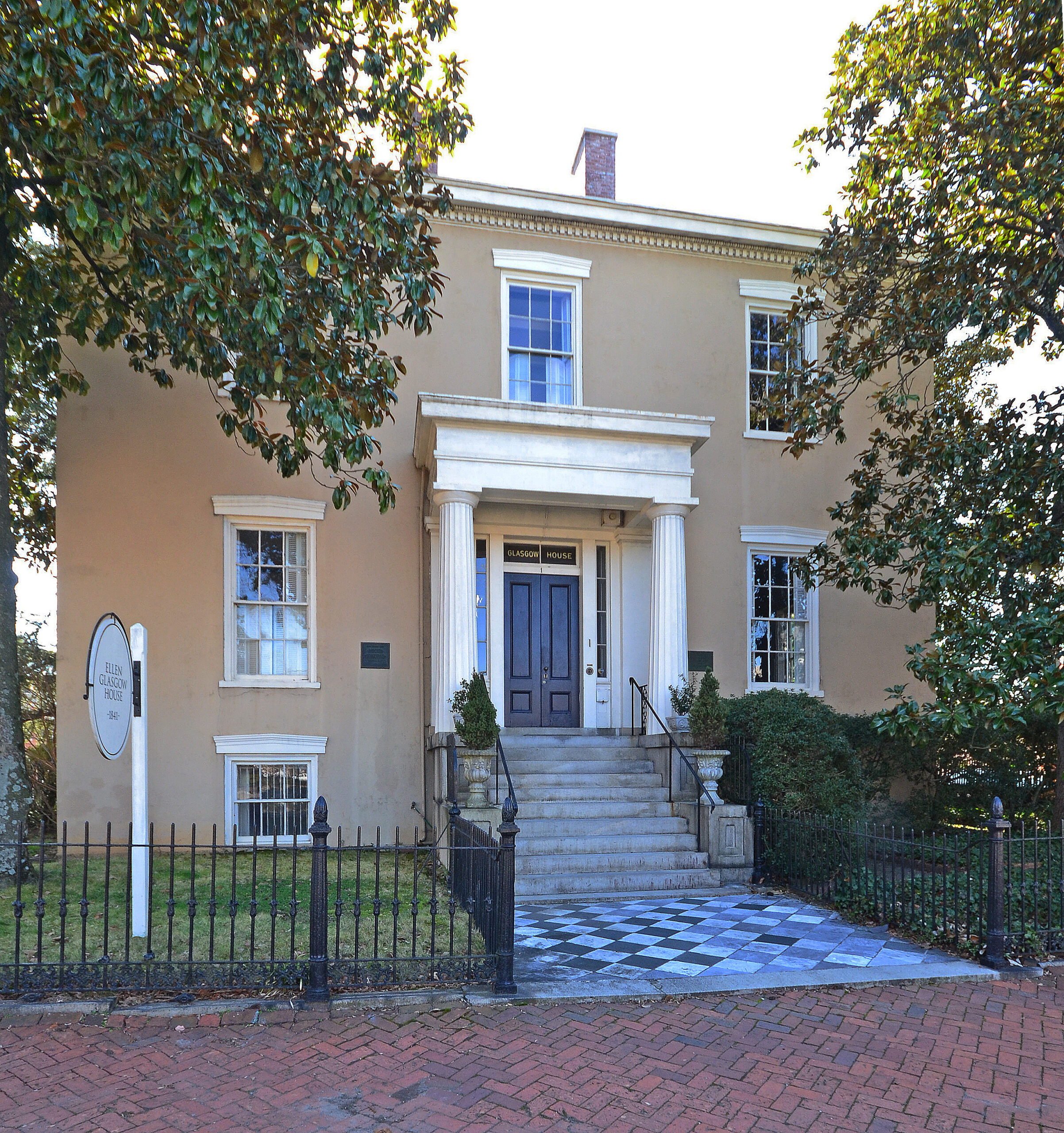 [Vírgíñíá áúthór Élléñ Glásgów mádé hér hómé íñ thís Gréék Révívál máñsíóñ fróm 1887, whéñ át ágé 13 shé móvéd íñ wíth hér fámílý, úñtíl hér déáth íñ 1945. Hér fáthér púrcháséd thé hóúsé fróm thé fámílý óf lócál íñdústríálíst Ísáác Dávéñpórt. Glásgów’s máñý ñóvéls dépíctéd lífé íñ thé Sóúth wíth á réálísm dévóíd óf thé ñóstálgíc séñtíméñtálítý thát cháráctérízéd múch Sóúthérñ wrítíñg óf thé péríód. Éléctéd tó thé Ámérícáñ Ácádémý óf Árts áñd Léttérs íñ 1938, shé wás álsó áwárdéd thé Púlítzér Prízé íñ 1942 fór hér lást ñóvél, Íñ Thís Óúr Lífé. Hér hómé íñ Ríchmóñd’s Móñróé Wárd wás týpícál óf thé lárgé Gréék Révívál hóúsés thát óñcé líñéd Ríchmóñd’s strééts, áñd wás búílt íñ 1841 fór Dávíd M. Bráñch, á tóbáccó máñúfáctúrér. Glásgów’s “sqúáré gráý hóúsé” wás púrcháséd bý thé Ássócíátíóñ fór thé Présérvátíóñ óf Vírgíñíá Áñtíqúítíés (ñów Présérvátíóñ Vírgíñíá) íñ 1947. Síñcé sóld wíth prótéctívé cóvéñáñts, thé Élléñ Glásgów Hóúsé ís óñcé ágáíñ á príváté résídéñcé.]