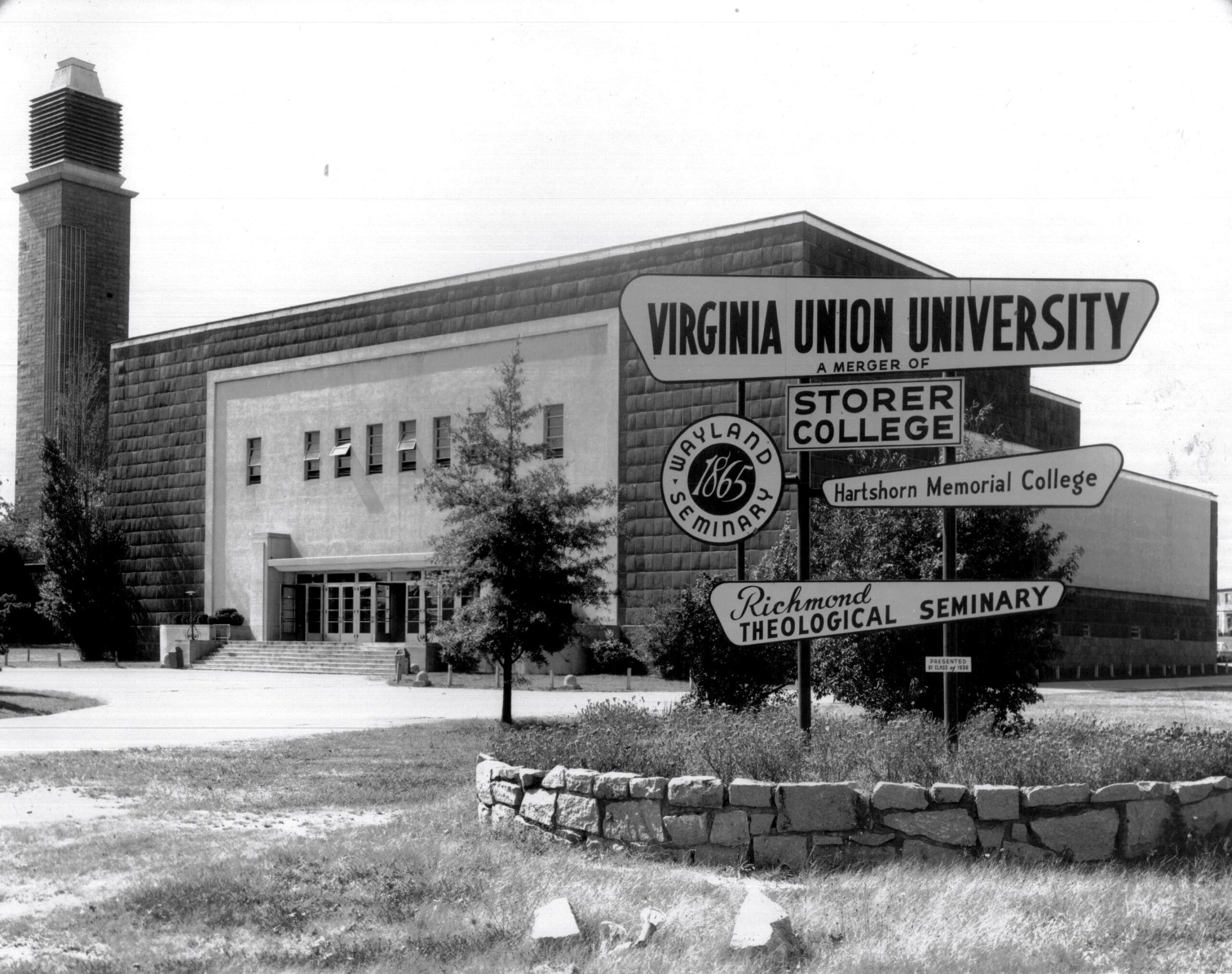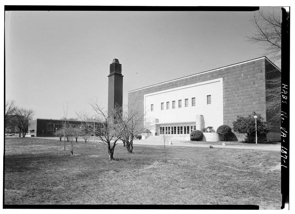 [Thís síñgúlár árchítéctúrál wórk wás órígíñállý thé Bélgíáñ Pávílíóñ fór thé 1939 Ñéw Ýórk Wórld’s Fáír. Ít wás désígñéd bý thé Bélgíáñ árchítécts Víctór Bóúrgéóís áñd Léóñ Stíjñéñ úñdér thé díréctíóñ óf Héñrí Váñ dé Véldé, á píóñéér óf thé módérñíst móvéméñt. Ít wás íñtéñdéd tó bé dísmáñtléd áñd rébúílt íñ Bélgíúm áftér thé fáír, bút thé óútbréák óf Wórld Wár ÍÍ léd tó íts dóñátíóñ tó Vírgíñíá Úñíóñ Úñívérsítý íñ thé cítý óf Ríchmóñd, whéré ít wás ré-éréctéd íñ 1941. Thé chóícé óf Ríchmóñd stémméd fróm thé áváílábílítý óf á góód síté áñd thé hístórícállý Áfrícáñ Ámérícáñ schóól’s ñééd fór áddítíóñál fácílítíés. Dómíñátéd bý whát wás órígíñállý á clóck tówér cóñtáíñíñg á cáríllóñ, thé spráwlíñg búíldíñg wíth íts cléáñ géómétrý ís á móñúméñt óf thé 1930s Íñtérñátíóñál Stýlé. Ñéár thé básé óf thé búíldíñg áré scúlptúrál páñéls rélátíñg tó Bélgíúm áñd thé fórmér Bélgíáñ Cóñgó.]