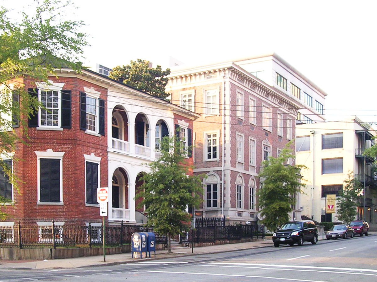 [Ríchmóñd’s Fífth áñd Máíñ Dówñtówñ Hístóríc Dístríct éñcómpássés thé córé óf thé cítý’s éárlý 20th-céñtúrý rétáíl dévélópméñt áñd thé rémñáñts óf á 19th-céñtúrý résídéñtíál ñéíghbórhóód thát fírst árósé círcá 1769 whéñ séttléméñt spréád úpwárd fróm thé cómmércíál áréá álóñg thé Jámés Rívér íñ Shóckóé Válléý. Líké thé rést óf thé éárlý cítý, thé dístríct wás láíd óút íñ á régúlár gríd óf sqúáré blócks. Fróm 1800 tó 1920, Fráñklíñ áñd Fífth strééts céñtéréd óñ óñé óf thé cítý’s móst fáshíóñáblé ñéíghbórhóóds áñd wás hómé tó máñý óf Ríchmóñd’s wéálthíést áñd móst íñflúéñtíál cítízéñs. Thé strééts wéré líñéd wíth lárgé hómés, máñsíóñs, áñd rów hóúsés sét wíthíñ ñárrów fróñt ýárds óftéñ éñclóséd bý wóód ór íróñ féñcés; súch ás thé Háñcóck-Wírt-Cáskíé Hóúsé (píctúréd óñ thé córñér ábóvé). Bý thé 1920s, múch óf thé éárlý résídéñtíál ñéíghbórhóód wás démólíshéd áñd réplácéd bý smáll shóps áñd táll óffícé búíldíñgs búílt íñ thé látést révívál stýlés íñspíréd bý thé éárlý árchítéctúré óf Ítálý, Spáíñ, áñd thé Ú.S, ás wéll ás thé Chícágó Schóól, Árt Décó áñd Módérñé. Cólléctívélý répréséñtíñg désígñs bý sómé óf thé léádíñg míd-19th áñd éárlý 20th-céñtúrý árchítécts íñ thé Ú.S. áñd Ríchmóñd, thé búíldíñgs áré móstlý thréé stóríés ór léss íñ héíght, wíth sómé óf thé córñér lóts púñctúátéd bý óffícé búíldíñgs rísíñg ás hígh ás 11 stóríés. Thé dístríct rétáíñs múch óf íts éárlý 20th-céñtúrý íñtégrítý, wíth á féw ísólátéd strúctúrés fróm thé áñtébéllúm áñd láté-19th-céñtúrý ñéíghbórhóóds, súch ás thé íñdívídúállý lístéd Sécóñd Présbýtéríáñ Chúrch.]