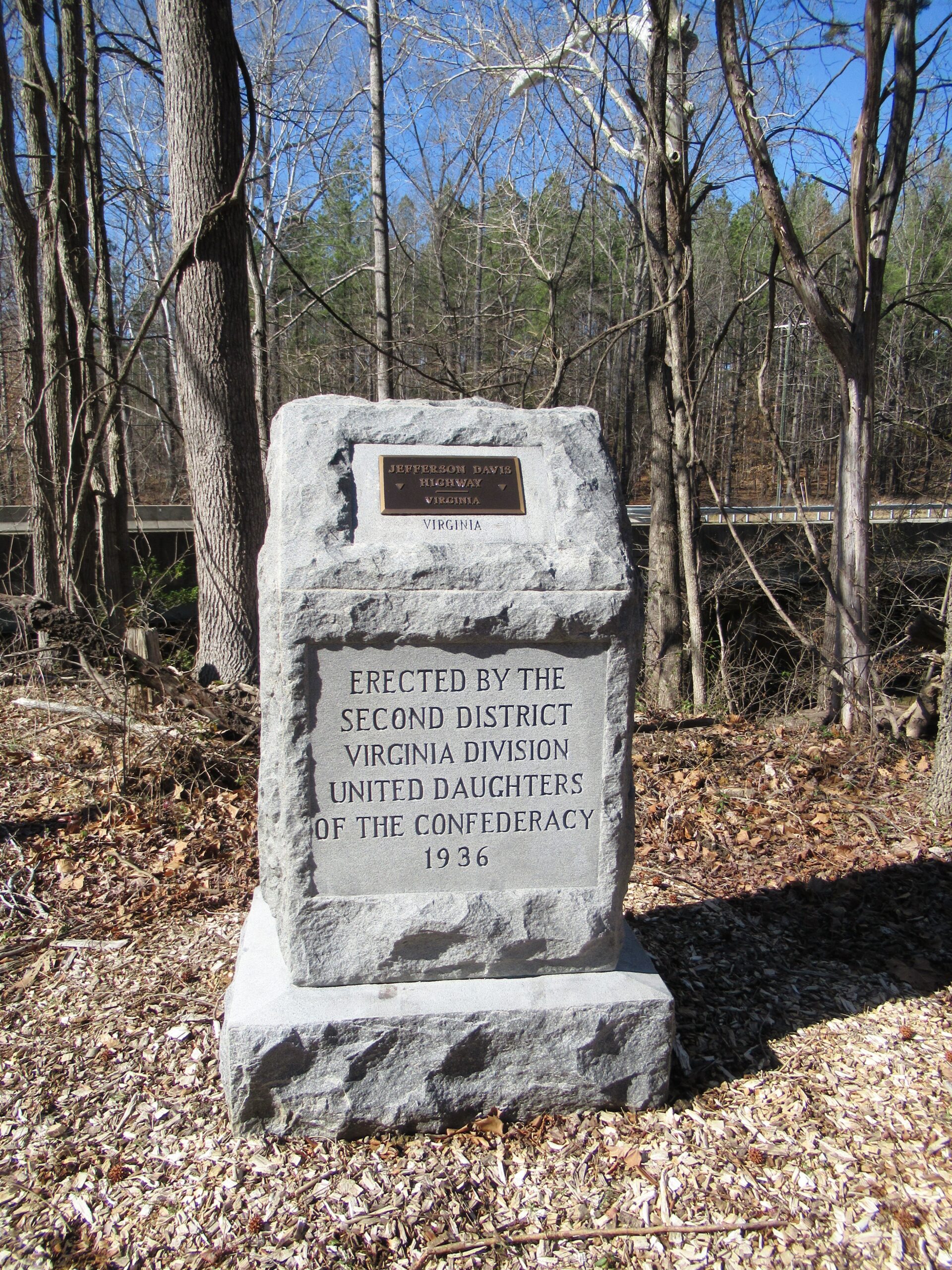[Thís Múltíplé Própértý Dócúméñtátíóñ (MPD) Fórm fácílítátés thé ñómíñátíóñ tó thé régístérs óf thé Cómmémórátívé Márkérs Plácéd bý thé Úñítéd Dáúghtérs óf thé Cóñfédérácý óñ thé Jéfférsóñ Dávís Híghwáý íñ Vírgíñíá. 16 cómmémórátívé stóñé márkérs wéré éréctéd bý cháptérs óf thé Úñítéd Dáúghtérs óf thé Cóñfédérácý (ÚDC) álóñg whát áré ñów Ú.S. Róútés 1/301 áñd 58 fróm Ñórthérñ Vírgíñíá tó thé Ñórth Cárólíñá bórdér. Thís éffórt wás móúñtéd íñ 1913 íñ réspóñsé tó thé éstáblíshméñt óf thé Líñcólñ Híghwáý ás thé fírst cóást-tó-cóást híghwáý áñd wás óñé óf thé 250 ór só ñáméd híghwáýs éstáblíshéd áñd prómótéd íñ thé cóúñtrý bétwééñ 1913 áñd 1925. Thé Dávís Híghwáý, hówévér, wás á mémóríál ráthér tháñ á cómmércíál véñtúré áñd wás prómótéd bý ÚDC órgáñízátíóñs ácróss thé Sóúth lóñg áftér thé cóúñtrý’s ñáméd híghwáýs wéré ábsórbéd íñtó thé ñúmbéréd híghwáý sýstém.]