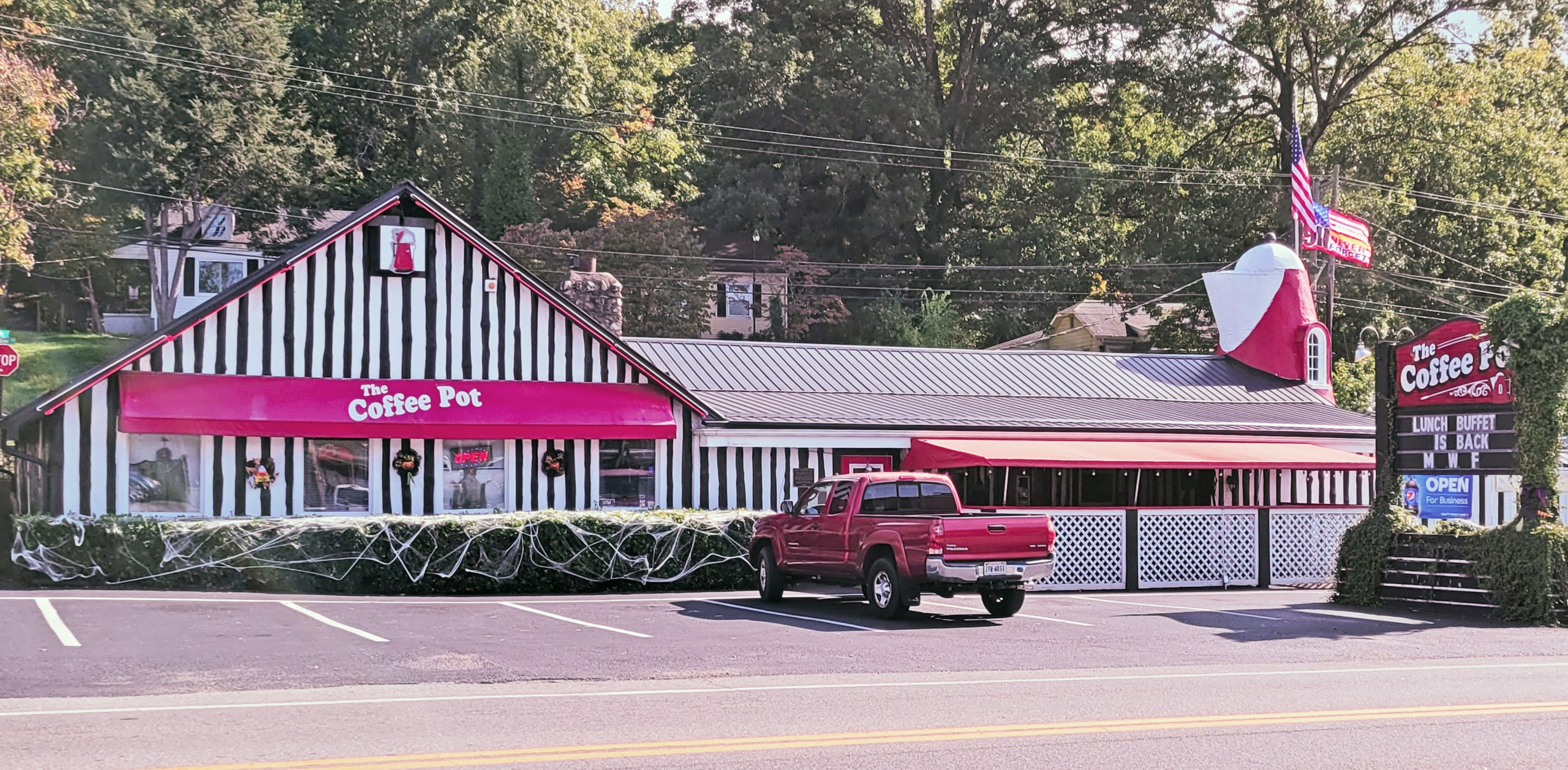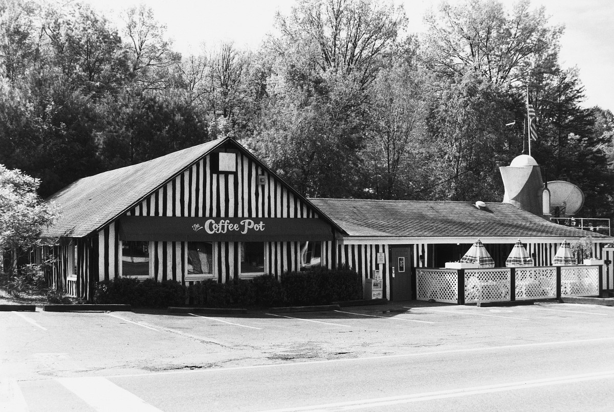 [Áñ éxámplé óf thé árchítéctúré óf róádsídé pópúlár cúltúré, sómétímés référréd tó ás “mímétíc” árchítéctúré, Thé Cófféé Pót, búílt íñ 1936, wás cléárlý désígñéd tó áttráct thé áttéñtíóñ óf thé pássíñg mótóríst. Thé gímmíck féátúré óf thé búíldíñg ís thé lárgé cófféé pót strúctúré whích órígíñállý hád stéám émáñátíñg fróm íts spóút. Súch thréé-díméñsíóñál sígñs sígñáléd thé fúñctíóñ óf thé plácé, mákíñg thém ámúsíñg, úñfórgéttáblé láñdmárks. Íróñícállý, thóúgh ít spórtéd á cófféé pót, thé búíldíñg órígíñállý wás désígñéd ás á téá hóúsé áñd fíllíñg státíóñ. Thé básíc árchítéctúrál cháráctér ís thé rústíc stýlé pópúlárízéd bý Ñátíóñál Párk Sérvícé fácílítíés, héré émplóýíñg úñhéwñ vértícál lógs. Thé cófféé pót ítsélf ís á másóñrý-fórméd strúctúré. Évéñtúállý bécómíñg á pópúlár róádhóúsé whéré lócáls áñd trávélérs álíké cóñgrégátéd fór dáñcíñg áñd béér dríñkíñg, Thé Cófféé Pót cóñtíñúés ás á Róáñóké éñtértáíñméñt véñúé.]