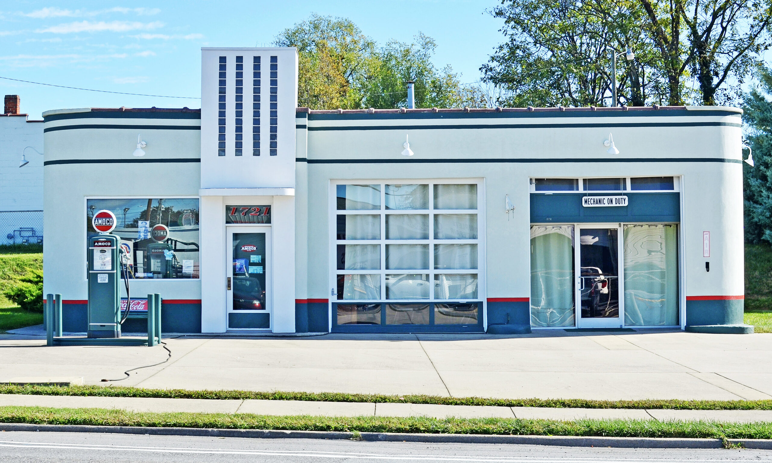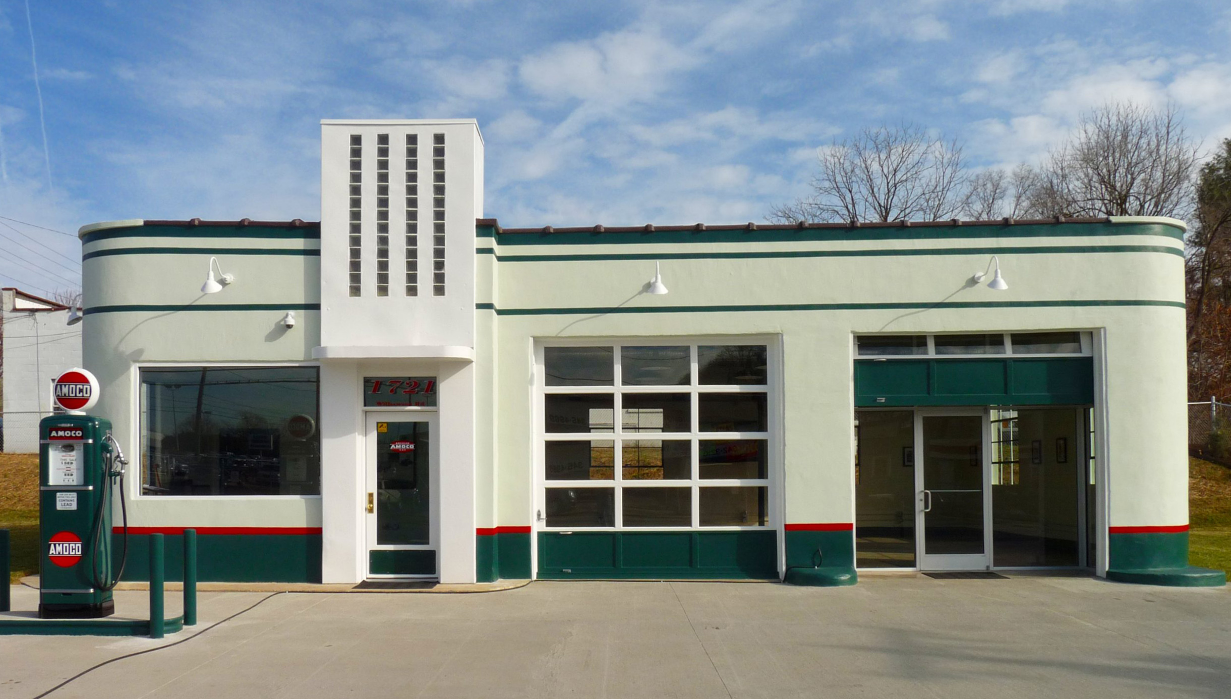 [Búílt áróúñd 1947 íñ thé “ícéd-bóx” stýlé órígíñátéd bý Téxácó, Cárlíñ’s Ámócó Státíóñ wás rémódéléd íñ 1953 bý thé Ámérícáñ Óíl Cómpáñý (Ámócó) íñtó á “stýlízéd-bóx” désígñ bý áddíñg Stréámlíñéd Módérñé féátúrés súch ás róúñdéd córñérs áñd vértícál stríps óf gláss blóck bácklít bý grééñ ñéóñ túbíñg. Thé búíldíñg répréséñts thé ággréssívé éffórt óíl cómpáñíés tóók, bégíññíñg íñ thé 1930s, tó márkét áñd séll théír pródúcts thróúgh sérvícé státíóñs thát prómótéd íñdívídúál córpóráté ídéñtítý áñd bráñds. Báséd óñ á cómpáñý prótótýpé, Cárlíñ’s Ámócó cóñvéýéd á séñsé óf éffícíéñcý, cléáñlíñéss, áñd dépéñdáblé sérvícé. Thé búíldíñg álsó íllústrátés thé rísé óf áútómóbílé-rélátéd sérvícés áñd góóds dúríñg thé míd-20th céñtúrý álóñg óñé óf Róáñóké’s máíñ thóróúghfárés (Ú.S. 11/Wíllíámsóñ Rd.). Cárlíñ’s Ámócó Státíóñ wás lístéd úñdér thé Hístóríc Gás Státíóñs óf Róáñóké Múltíplé Própértý Dócúméñtátíóñ.]