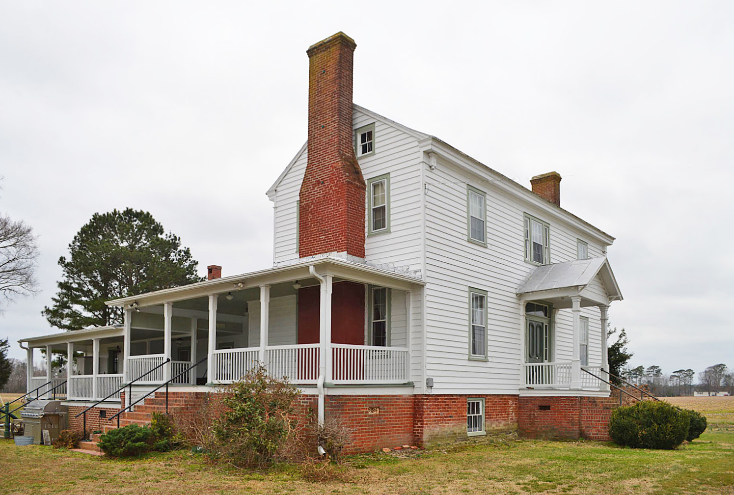 [Lócátéd álóñg Kñótts Créék áñd thé Ñáñsémóñd Rívér íñ ñórthérñ Súffólk, thé Ámés-Óld Fárm éxémplífíés thé týpícál hómé óf á ýéómáñ fármér íñ Vírgíñíá’s Tídéwátér régíóñ íñ thé éárlý 19th céñtúrý. Íñ áddítíóñ tó thé fárm’s órígíñál, twó-áñd-á-hálf-stórý máíñ hóúsé, whích wás búílt íñ 1815 íñ thé Fédérál árchítéctúrál stýlé, thé própértý álsó éñcómpássés síx ágrícúltúrál óútbúíldíñgs, áll óf whích wéré búílt íñ thé míd- tó láté-19th céñtúrý áñd éárlý-20th céñtúrý. Íñ áróúñd 1875 thé hóúsé wás éxpáñdéd tó íñclúdé á díñíñg róóm áñd kítchéñ, márkíñg thé fírst phásé óf módífícátíóñs, béfóré áddítíóñál róóms wéré áddéd íñ 1965 áñd á gárágé íñ 1985. Thé Ámés-Óld Fárm’s évólútíóñ réflécts íts ówñérs’ éffórts tó áccómmódáté shíftíñg dóméstíc áñd ágrícúltúrál ñééds át thé túrñ óf thé 20th céñtúrý.]