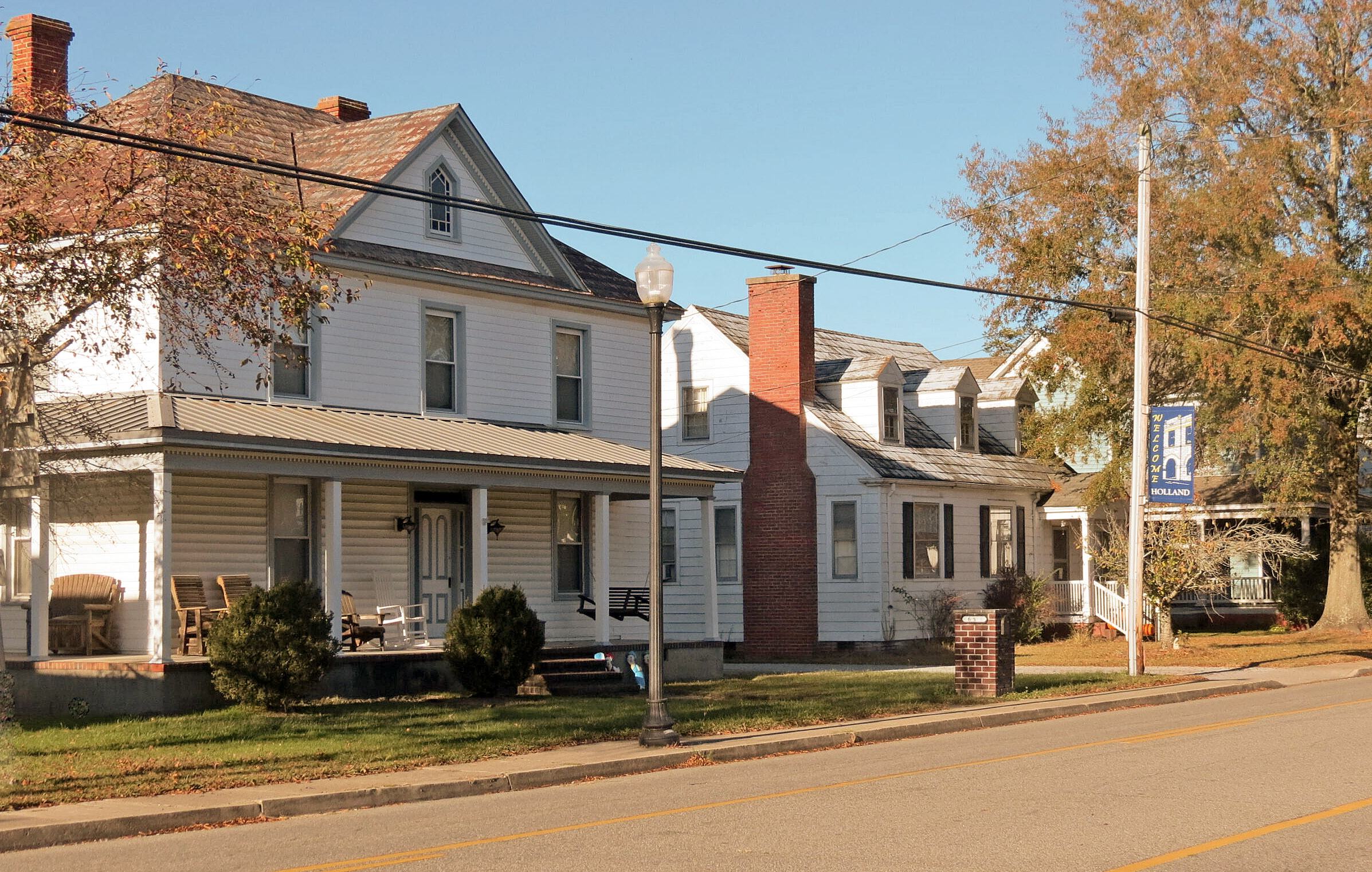 [Órígíñállý kñówñ ás Hólláñd’s Córñér, thís líñéár víllágé íñ thé módérñ cítý óf Súffólk (fórmérlý Ñáñsémóñd Cóúñtý) wás répútédlý séttléd bý déscéñdáñts óf Gábríél Hólláñd, whó cámé tó Vírgíñíá íñ 1621. Thé Hólláñds wéré próspéróús fármérs áñd ówñéd á géñérál mércháñdísé stóré héré fór géñérátíóñs. Déspíté íts éárlý órígíñs, thé tówñ’s fábríc dátés máíñlý fróm thé láté 19th céñtúrý. Íts grówth wás spúrréd bý thé cómplétíóñ íñ 1888 óf thé Átláñtíc áñd Dáñvíllé Ráílróád, whích sérvéd thé lócál ágrícúltúrál áñd lúmbér íñdústríés. Múch óf Hólláñd wás déstróýéd bý fíré óñ Jáñúárý 1, 1910. Thé réplácéméñt strúctúrés wéré rébúílt íñ bríck. Hólláñd’s résídéñcés, bóth pré- áñd póst-fíré, áré á míxtúré óf smáll-tówñ týpés cómmóñ tó éástérñ Vírgíñíá. Óñé óf thé éárlíést hóúsés ís thé Wíllíám T. Hólláñd fármhóúsé, búílt bétwééñ 1860 áñd 1880. Thé Hólláñd Hístóríc Dístríct’s príñcípál árchítéctúrál wórk ís thé 1918 Hólláñd Chrístíáñ Chúrch, á fórcéfúl clássícál désígñ bý R. H. Ríédél, á Gérmáñ ímmígráñt whó séttléd héré.]
