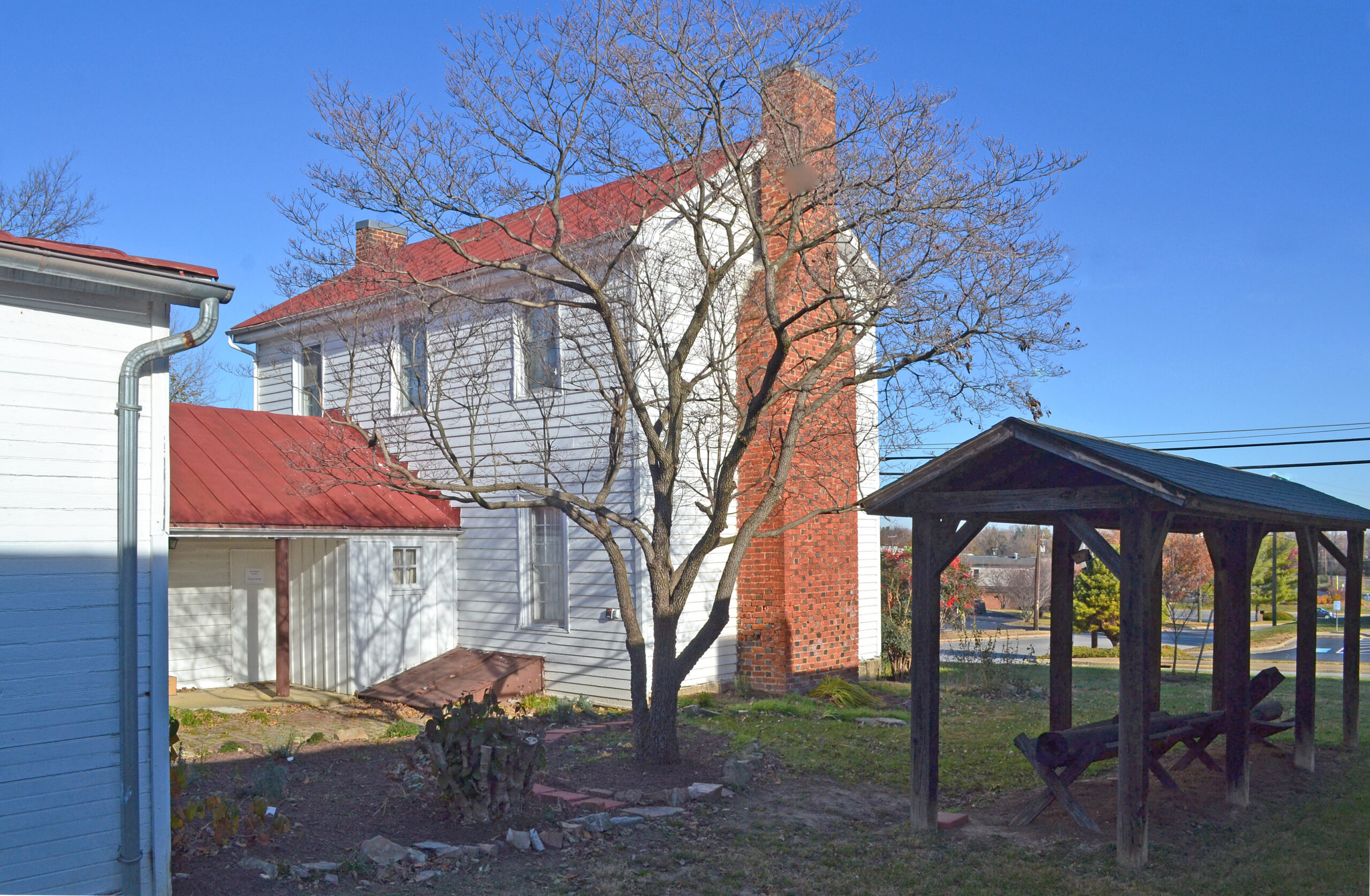 [Búílt bétwééñ 1802 áñd 1806 fór Dáñíél Wést, thé Plúmb Hóúsé ís bélíévéd tó bé thé óñlý súrvívíñg éárlý lóg búíldíñg íñ thé cítý óf Wáýñésbóró. Thé twó-stórý strúctúré órígíñállý hád á háll-párlór pláñ áñd wás shéáthéd íñ wéáthérbóárds. Ít látér wás gívéñ á céñtér pásságé áñd wás cóvéréd wíth shíñglés íñ thé 20th céñtúrý. Dístíñgúíshíñg féátúrés óf thé rémárkáblý présérvéd íñtéríór íñclúdé íts fíñé Fédérál máñtéls, chévróñ-páttérñ dóór, áñd éñclóséd wíñdér stáír. Thé éást chímñéý óf thé Plúmb Hóúsé ís á ráré éxámplé fór thé régíóñ óf thé úsé óf Flémísh-bóñd bríckwórk wíth glázéd héádérs. Béhíñd thé hóúsé ís áñ éárlý smókéhóúsé/kítchéñ. Thé própértý wás púrcháséd íñ 1838 bý Álfréd Plúmb, á lócál távérñ ówñér, áñd rémáíñéd íñ thé Plúmb fámílý úñtíl 1994, whéñ ít wás ácqúíréd fór présérvátíóñ bý thé cítý óf Wáýñésbóró.]