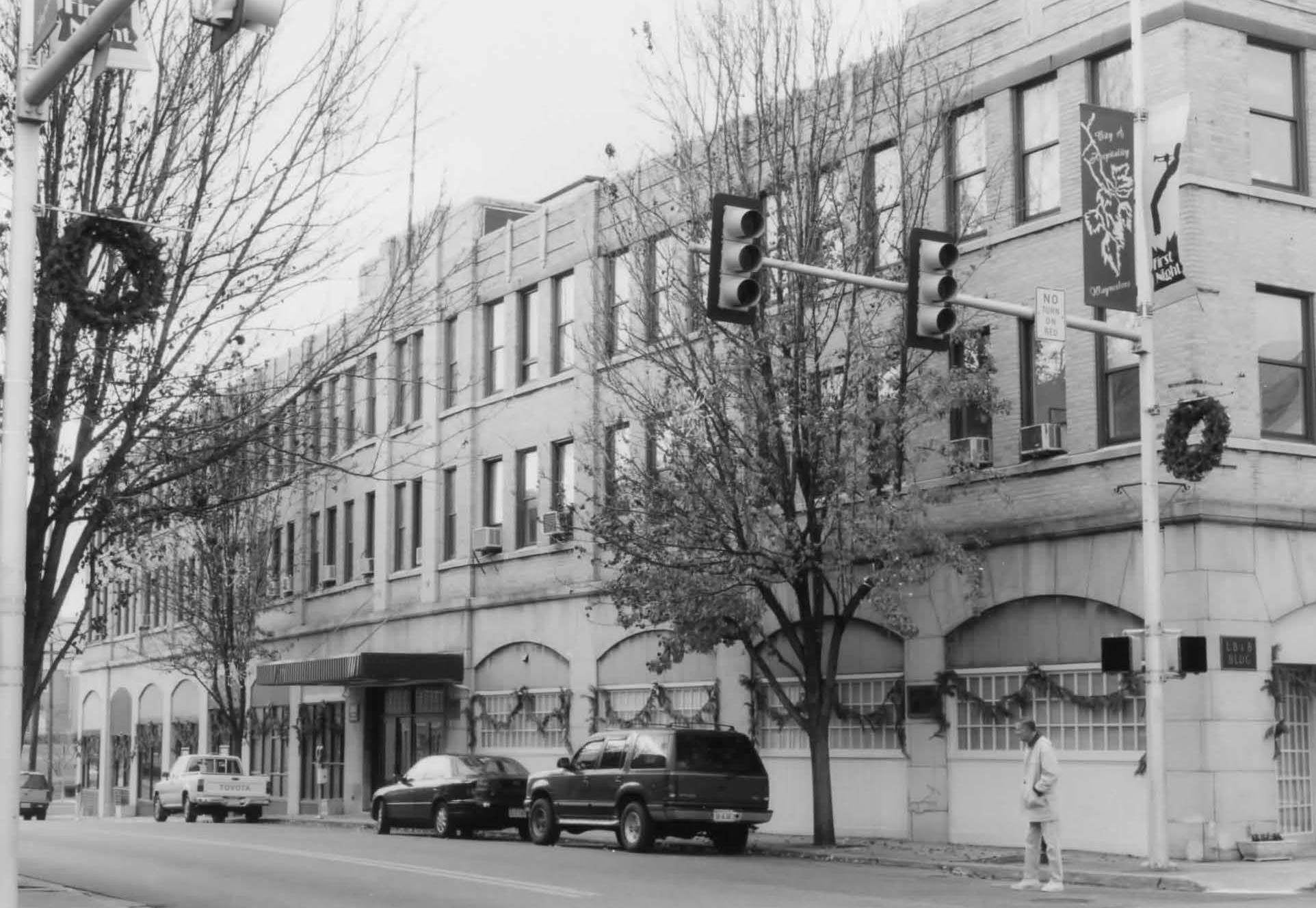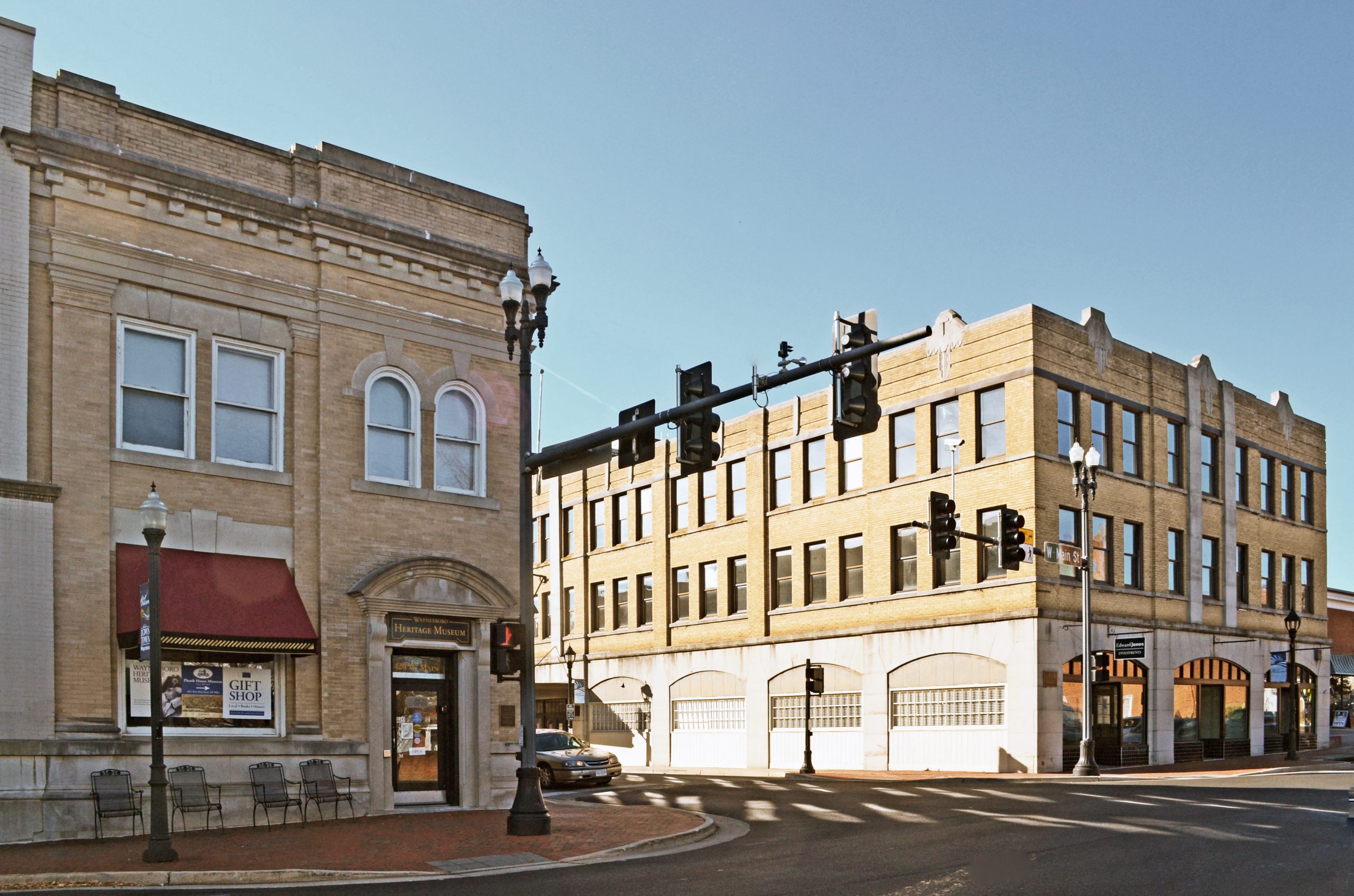[Thé Wáýñésbóró Dówñtówñ Hístóríc Dístríct cóñsísts óf thé hístóríc córé óf thé cítý óf Wáýñésbóró. Pláttéd íñ 1798, thé dówñtówñ dévélópéd íñtó á plácé óf búsíñéssés áñd résídéñcés óvér thé cóúrsé óf thé 19th céñtúrý. Thé dístríct’s éárlíést súrvívíñg búíldíñg ís thé círcá 1806 Cáspér Cóíñér Hóúsé; hówévér, móst óf thé búíldíñgs íñ thé dístríct áré cómmércíál búíldíñgs dátíñg fróm thé láté-19th- áñd éárlý-20th-céñtúríés. Fóllówíñg á dévélópméñt bóóm áróúñd 1890, thé dówñtówñ éxpáñdéd, áñd bý thé míd-20th-céñtúrý, stórés, báñks, hótéls, áñd óthér búíldíñgs crówdéd álóñg Máíñ Stréét áñd Wáýñé Ávéñúé, thé tówñ’s príñcípál thóróúghfárés. Á ñúmbér óf árchítéctúrállý sígñífícáñt búíldíñgs áré láñdmárks íñ thé dístríct íñclúdíñg thé 1908-09 Clássícál Révívál-stýlé Fírst Ñátíóñál Báñk, thé 1929 Árt Décó LB & B Búíldíñg, áñd thé 1937-38 Cólóñíál Révívál Géñérál Wáýñé Hótél. Cóñtáíñíñg 60 búíldíñgs, thé Wáýñésbóró Dówñtówñ Hístóríc Dístríct rétáíñs íts státús ás thé cómmércíál héárt óf thé cítý.]