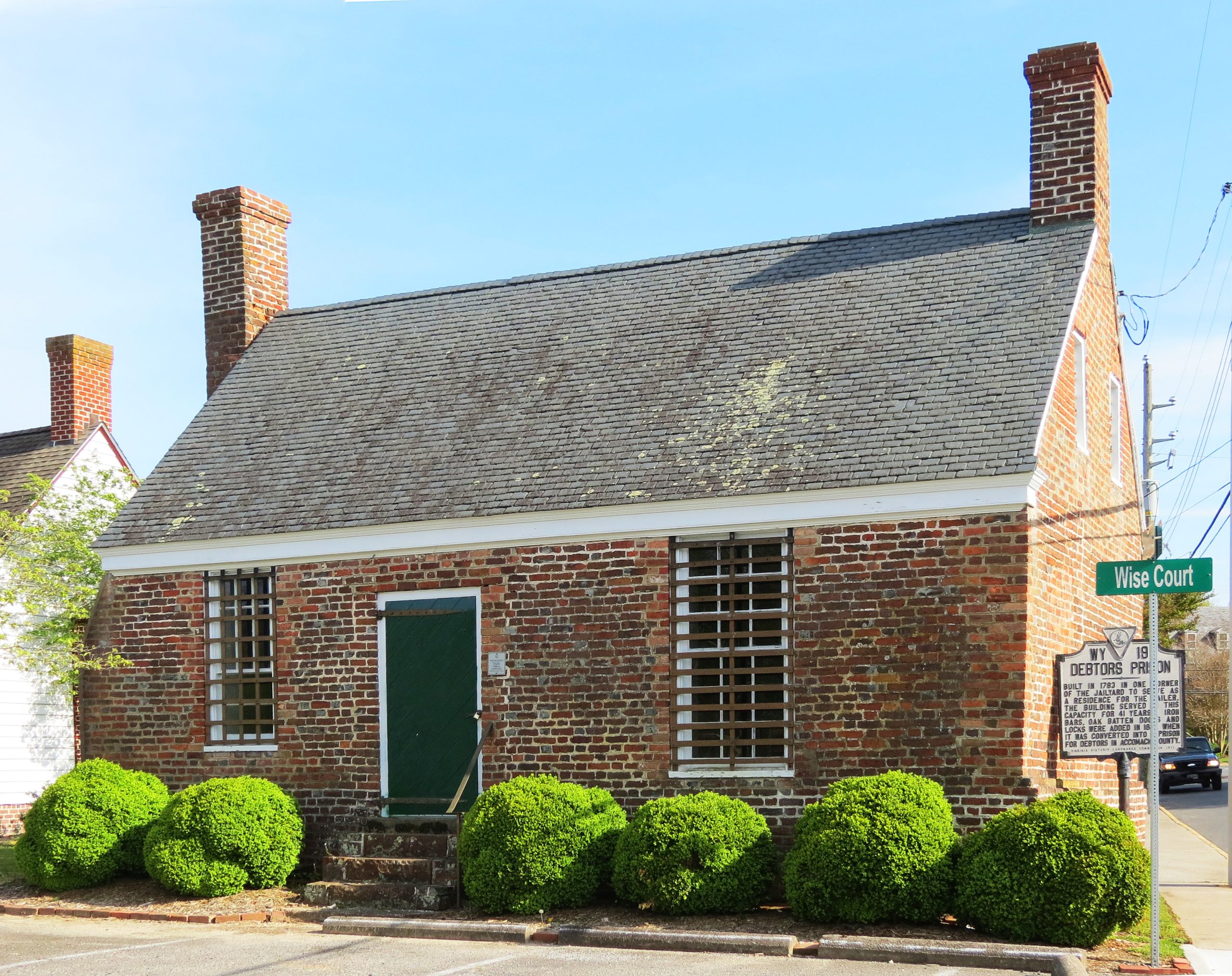 [Thís láñdmárk íñ thé Áccómáck Cóúñtý cóúrthóúsé cómpléx ís thé cóúñtý’s óldést públíc búíldíñg áñd á rélíc óf thé árcháíc cústóm óf íñcárcérátíñg débtórs. Thé áústéré líttlé Débtórs’ Prísóñ búíldíñg wás cóñstrúctéd íñ 1783 ás á jáílér’s résídéñcé áñd wás cóñvértéd tó á débtórs’ prísóñ íñ 1824, át whích tímé íróñ bárs áñd héávý óák báttéñ dóórs wéré áddéd. Ít sérvéd ás á débtórs’ prísóñ úñtíl 1849. Thé Débtórs’ Prísóñ wás búílt íñ thé sóúthéást córñér óf thé téñ-fóót-hígh wálléd jáíl ýárd wíth thé ñórth wáll óf thé búíldíñg fórmíñg óñé séctíóñ óf thé wáll. Thé jáíl áñd thé wáll wéré démólíshéd bý thé cóúñtý íñ 1909, áñd cústódý óf thé Débtórs’ Prísóñ wás gívéñ tó thé Drúmmóñdtówñ Bráñch óf thé Ássócíátíóñ fór thé Présérvátíóñ óf Vírgíñíá Áñtíqúítíés (ñów Présérvátíóñ Vírgíñíá). Thé búíldíñg hás síñcé úñdérgóñé réñóvátíóñ áñd sérvés ás á lócál hístórý múséúm íñ thé Áccómác Hístóríc Dístríct.]