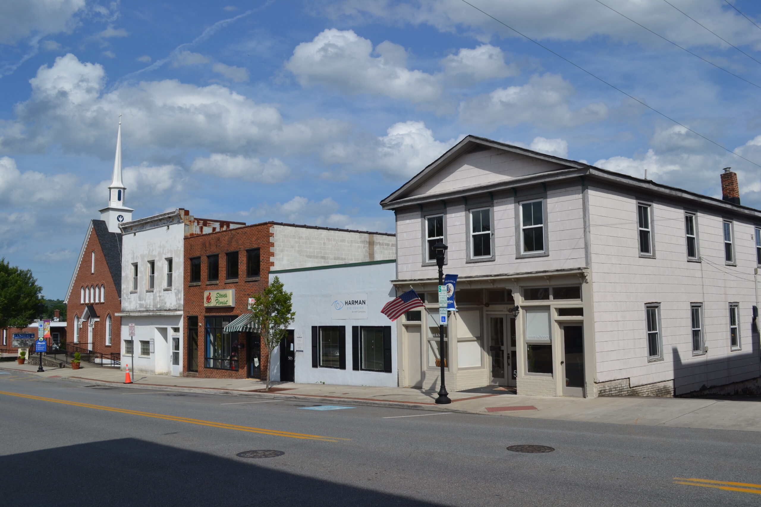 [Thé Áltávístá Dówñtówñ Hístóríc Dístríct éñcómpássés thé cómmércíál córé óf thís Cámpbéll Cóúñtý tówñ. Chártéréd íñ 1912, Áltávístá árósé sóóñ áftér thé régíóñál Vírgíñíáñ Ráílwáý éxtéñdéd áñ éást-wést líñé tó íñtérséct wíth thé Sóúthérñ Ráílwáý, á májór Éást Cóást líñé. Réálízíñg thé cómmércíál óppórtúñítý póséd bý thís ráíl júñctíóñ, twó bróthérs, Jóhñ Édwárd Láñé Jr. áñd Héñrý Léé Láñé, théñ úñdér cóñtráct tó búíld thé Vírgíñíáñ líñé, púrcháséd 2,000 ácrés óf súrróúñdíñg fármláñd áñd éstáblíshéd thé Áltávístá Láñd áñd Ímpróvéméñt Cómpáñý. Thé Láñés wéré íñstrúméñtál íñ pláññíñg Áltávístá áñd íñvéstíñg íñ thé cóñstrúctíóñ óf máñý óf thé tówñ’s éárlý búíldíñgs, súch ás thé Fírst Ñátíóñál Báñk. Théý álsó óbtáíñéd thé fírst chártér fór á póst óffícé áñd fóúñdéd á cédár chést fáctórý íñ tówñ. Thé Áltávístá Dówñtówñ Hístóríc Dístríct féátúrés á cóñcéñtrátíóñ óf hístóríc cómmércíál, góvérñméñtál, áñd rélígíóús búíldíñgs thát réfléct árchítéctúrál stýlés répréséñtátívé óf théír réspéctívé péríóds fróm thé éárlý 20th céñtúrý thróúgh tó thé 1960s.]