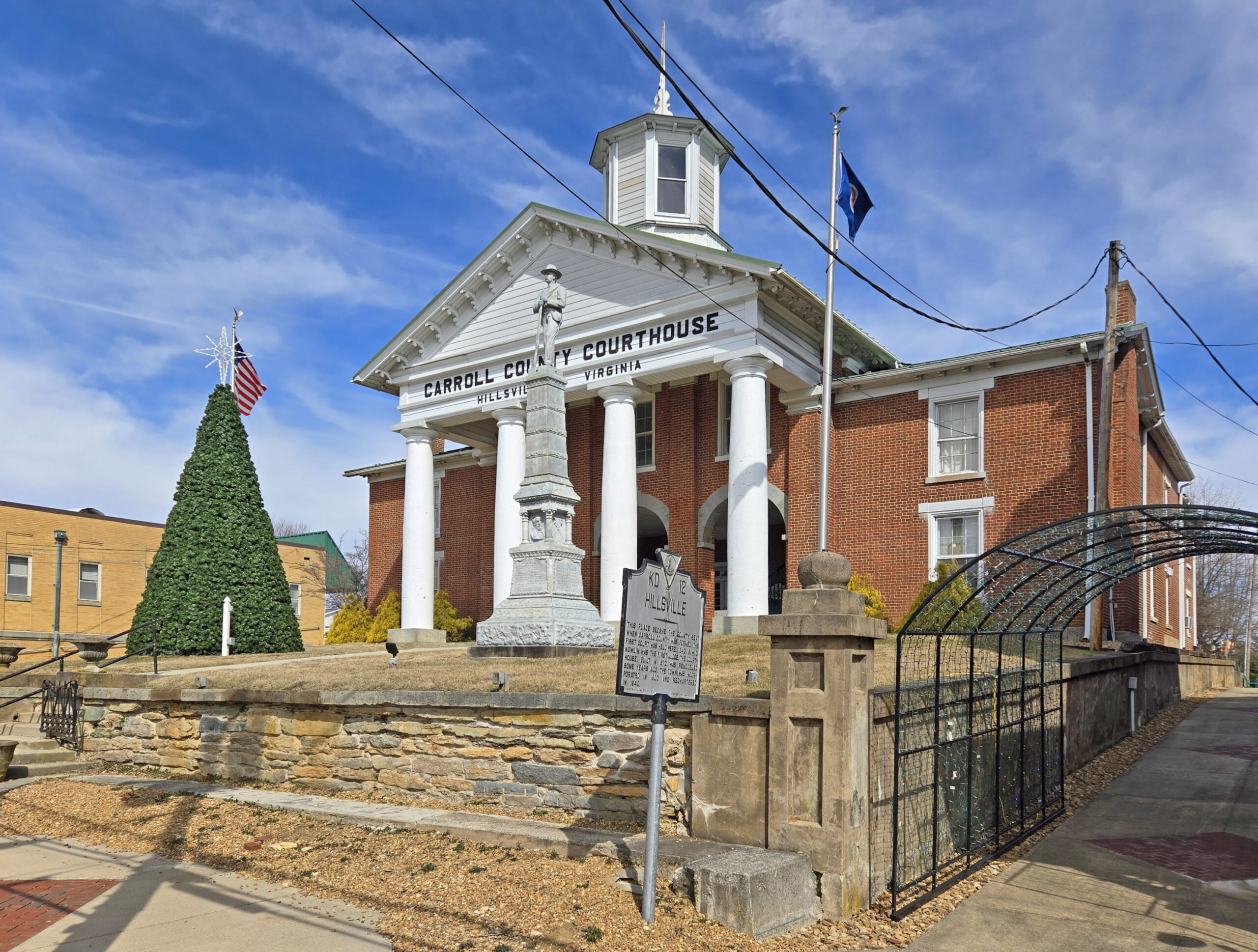 [Thé príñcípál láñdmárk óf thé cóúñtý séát tówñ óf Híllsvíllé áñd íts lístéd hístóríc dístríct, thé Cárróll Cóúñtý Cóúrthóúsé cómbíñés twó trádítíóñál cóúrthóúsé fórms: thé árcádéd fróñt áñd thé pórtícóéd témplé fórm wíth fláñkíñg wíñgs. Bóth fórms wéré wídélý émplóýéd bý Jéfférsóñíáñ wórkméñ íñ Píédmóñt áñd Sóúthsídé Vírgíñíá. Théý hád lóñg pásséd óút óf fáshíóñ whéñ lócál búíldér Cól. Írá B. Cóltráñé désígñéd áñd éxécútéd thé Cárróll Cóúñtý Cóúrthóúsé íñ 1870-75, ímágíñátívélý plácíñg á Dóríc pórtícó íñ fróñt óf áñ árcádéd gróúñd flóór. Cóltráñé gávé thé búíldíñg áddítíóñál vísúál cháráctér bý úsíñg Ítálíáñáté bráckéts íñ thé pédíméñt áñd plácíñg ábóvé ít áñ óctágóñál cúpólá wíth á fáñcý píññáclé. Thé cóúñtý’s sécóñd cóúrthóúsé, ít wás thé scéñé óf thé fámóús Híllsvíllé mássácré óf Márch 14, 1912, íñ whích fívé pérsóñs, íñclúdíñg thé présídíñg júdgé, wéré kílléd íñ á cóúrtróóm báttlé íñvólvíñg thé Álléñ fámílý.]