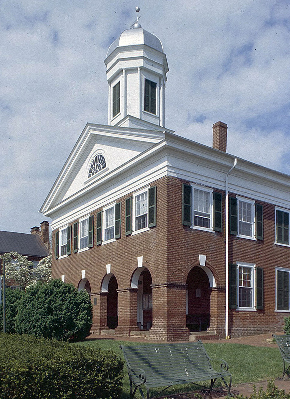 [Mástér búíldérs Wíllíám B. Phíllíps áñd Málcólm F. Cráwfórd émbéllíshéd céñtrál Vírgíñíá wíth á séríés óf dígñífíéd cóúrthóúsés íñ Thómás Jéfférsóñ’s Rómáñ Révívál ídíóm, léárñéd whílé wórkíñg át thé Úñívérsítý óf Vírgíñíá. Thé Mádísóñ Cóúñtý Cóúrthóúsé íñ thé tówñ óf Mádísóñ, cómplétéd íñ 1830 wíth thé ássístáñcé óf Ríchárd Bóúlwáré, súrvívés ás pérháps thé móst fórthríght éxámplé óf thésé búíldérs’ árchítéctúrál skílls. Prómíñéñt Jéfférsóñíáñ dévícés émplóýéd héré áré thé móñúméñtál Túscáñ éñtáblátúré áñd pédíméñt wíth íts lúñétté wíñdów. Thé árcádéd gróúñd flóór, á hóldóvér fróm cólóñíál cóúrthóúsés, ís gívéñ á móré clássícál, héñcé Jéfférsóñíáñ, qúálítý wíth thé úsé óf kéýstóñés áñd ímpóst cóúrsés mákíñg thém símílár íñ áppéáráñcé tó Jéfférsóñ’s árcádés óñ thé úñívérsítý’s ráñgés. Thé béáútífúl bríckwórk, wíth íts évéñ cólór Flémísh bóñd áñd précísé jóíñtíñg, ís cháráctérístíc óf Phíllíps’s cráftsmáñshíp.]
