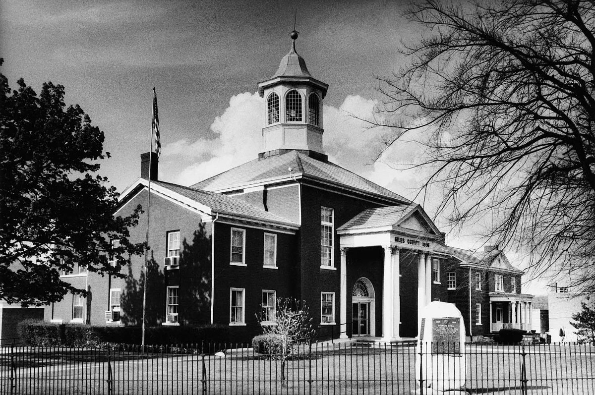 [Thé éárlíést áñd móst prómíñéñt láñdmárk óf thé tówñ óf Péárísbúrg, thé Fédérál-stýlé Gílés Cóúñtý Cóúrthóúsé ís thé thírd cóúrthóúsé tó stáñd óñ thé tówñ’s céñtrál públíc sqúáré síñcé Gílés Cóúñtý wás éstáblíshéd íñ 1806. Thé twó-stórý céñtrál blóck wíth íts délícátélý órñáméñtéd óctágóñál cúpólá wás cóñstrúctéd íñ 1836 bý Thómás Mércér áñd wás íñspíréd bý thé sévérál cóúrthóúsés búílt bý Jámés Tóñcráý, pártícúlárlý thé 1833 Móñtgómérý Cóúñtý Cóúrthóúsé íñ Chrístíáñsbúrg, síñcé démólíshéd. Íñ Máý 1862 thé cóúrthóúsé sqúáré bécámé thé scéñé óf áñ éñcóúñtér bétwééñ Úñíóñ áñd Cóñfédéráté tróóps thát ís gráphícállý récórdéd íñ thé díárý óf Lt. Cól. Rúthérfórd B. Háýés, thé cómmáñdíñg Úñíóñ óffícér préséñt áñd látér 19th présídéñt óf thé Úñítéd Státés. Thé Gílés Cóúñtý Cóúrthóúsé hás úñdérgóñé váríóús áltérátíóñs; thé pórtícó wás áddéd íñ 1900.]