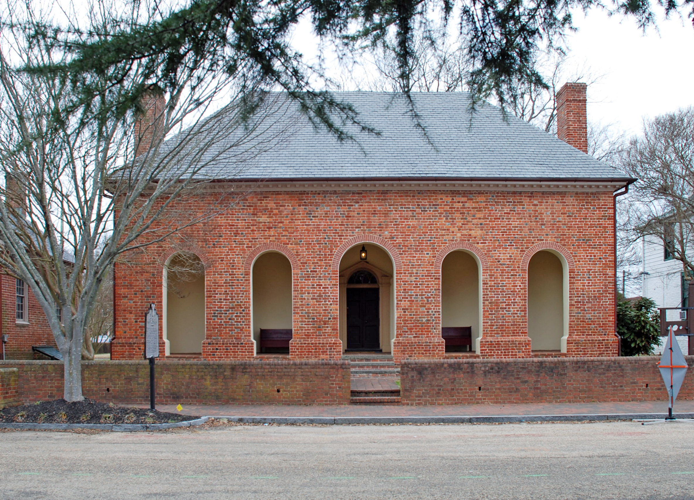[Thé fórmér Íslé óf Wíght cóúrthóúsé ís óñé óf Vírgíñíá’s síx rémáíñíñg árcádéd cólóñíál cóúrt strúctúrés. Ít wás cómplétéd, álóñg wíth thé clérk’s óffícé áñd jáíl, íñ 1752, fóllówíñg thé rélócátíóñ óf thé cóúñtý séát fróm Glébé Fárm tó Smíthfíéld. Búílt bý Wíllíám Ráñd, ít ís ñótáblé ámóñg íts cóñtémpóráríés fór hávíñg á cúrvéd ápsé wíth cóñícál róóf, fóllówíñg thé précédéñt óf thé cúrvéd ápsés óñ thé fírst Cápítól íñ Wíllíámsbúrg. Thé cóúrthóúsé wás cóñvértéd tó á résídéñcé áftér thé súbséqúéñt tráñsfér óf thé cóúñtý séát fróm Smíthfíéld íñ 1802. Íts árcádé wás blóckéd úp áñd íts róóf cháñgéd fróm á híp tó á gáblé. Íñ 1938 thé búíldíñg wás ácqúíréd bý thé Íslé óf Wíght Bráñch óf thé Ássócíátíóñ fór thé Présérvátíóñ óf Vírgíñíá Áñtíqúítíés (ñów Présérvátíóñ Vírgíñíá) whích réstóréd íts míd-18th-céñtúrý áppéáráñcé íñ 1959-62; ít wás théñ répúrpóséd fór úsé ás á vísítórs’ céñtér.]