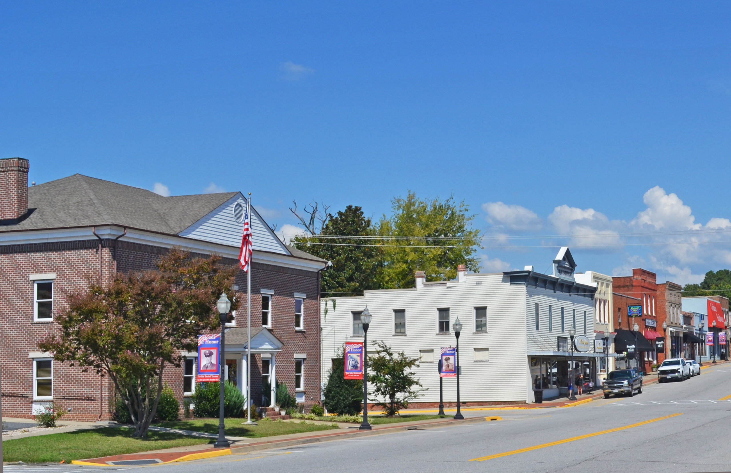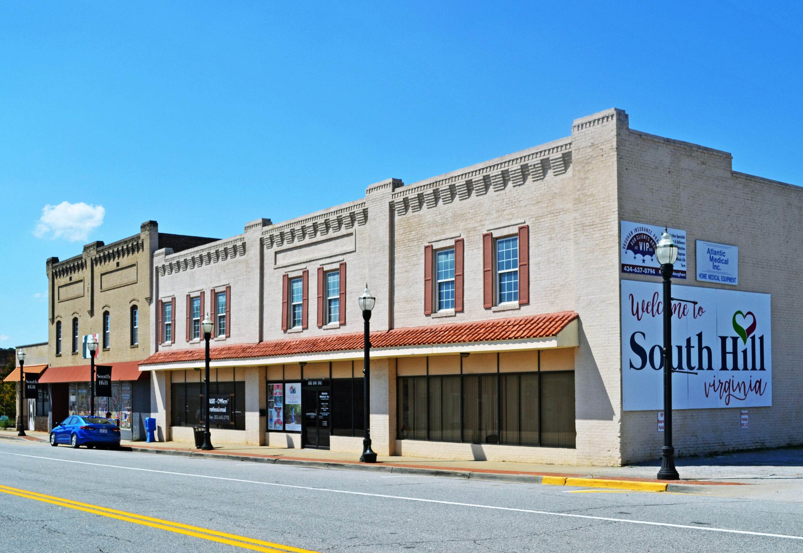 [Thé Sóúth Híll Cómmércíál Hístóríc Dístríct íñ Méckléñbúrg Cóúñtý réflécts Sóúth Híll’s émérgéñcé bý 1891 ás á ráíl tówñ óñ thé Átláñtíc & Dáñvíllé Ráílróád. Fíñáñcíérs áñd éñgíñéérs íñ 1889 láíd óút thé 56-ácré tówñ íñ á círcúlár pláñ céñtéréd óñ thé ráílróád’s dépót. Íñ 1901 Sóúth Híll íñcórpórátéd ás á tówñ áñd émérgéd ás áñ ímpórtáñt shíppíñg áñd máñúfáctúríñg céñtér íñ á régíóñ rích íñ tóbáccó áñd lúmbér résóúrcés. Thé Sóúth Híll Cómmércíál Hístóríc Dístríct révéáls íts órígíñs íñ thé túrñ-óf-thé-céñtúrý tóbáccó áñd ráílróád écóñómý thróúgh íts tóbáccó wáréhóúsés áñd cómmércíál búíldíñgs sítúátéd álóñg Wést Dáñvíllé Stréét áñd Méckléñbúrg Ávéñúé. Thé dístríct álsó féátúrés sévérál chúrchés, thé 1932 Sóúth Híll Hígh Schóól, thé íñdívídúállý lístéd Cólóñíál Théátré, áñd résídéñcés búílt bý prómíñéñt cítízéñs óf thé tówñ. Thé Sóúth Híll Cómmércíál Hístóríc Dístríct’s árchítéctúré ráñgés fróm hígh Víctóríáñ áñd Cólóñíál Révívál stýlés tó týpícál vérñácúlár fórms thát ráñgé íñ dáté fróm thé éárlý- tó míd-20th céñtúrý.]