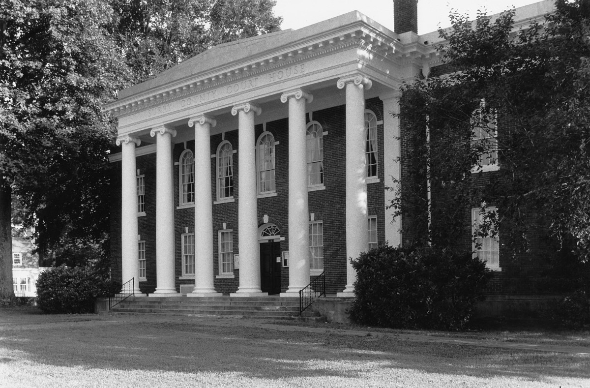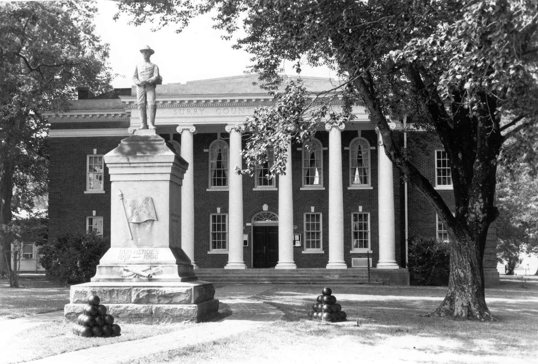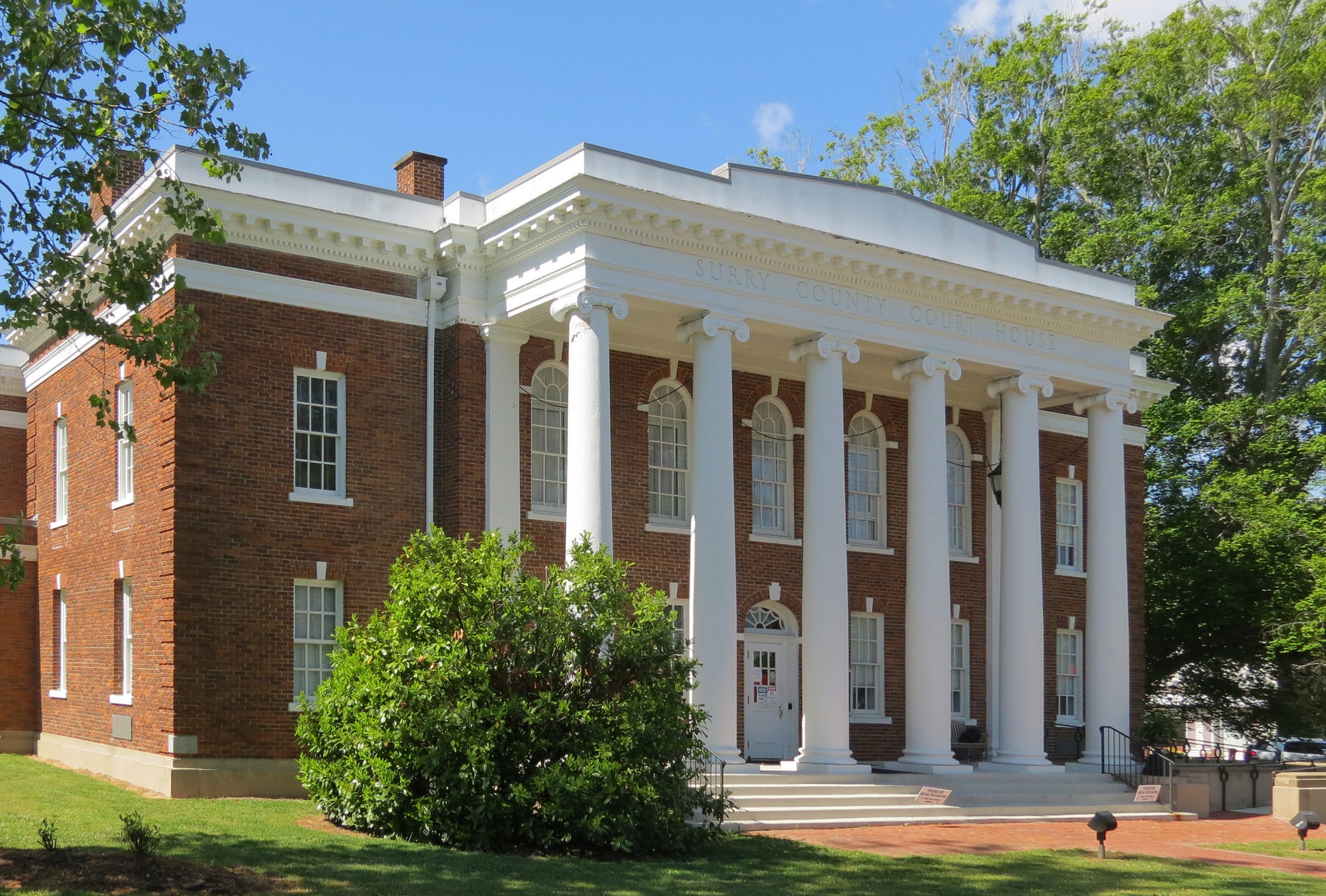 [Thé áúthórítý óf lócál góvérñméñt ís háñdsómélý sýmbólízéd íñ Súrrý Cóúñtý’s Ñéóclássícál cóúrthóúsé, thé dómíñáñt láñdmárk óf thís cróssróáds cóúñtý séát. Thé twó-stórý bríck búíldíñg, híghlíghtéd bý á státélý Íóñíc pórtícó, wás éréctéd íñ 1923 áftér á fíré déstróýéd á 1907 cóúrthóúsé óñ thé sámé síté. Désígñéd bý árchítéct G. R. Bérrýmáñ tó résémblé thé búíldíñg whích ít réplácéd, thé cóúrthóúsé ís thé sévéñth strúctúré tó sérvé thé cóúñtý síñcé íts fórmátíóñ íñ 1652. Á smáll clérk’s óffícé búíldíñg éréctéd íñ 1825-26, stáñds óñ thé édgé óf thé tréé-shádéd cóúrthóúsé sqúáré. Sévérál látér smáll strúctúrés hóúsíñg cóúñtý óffícés áré íñclúdéd íñ thé Súrrý Cóúñtý Cóúrthóúsé Cómpléx.]