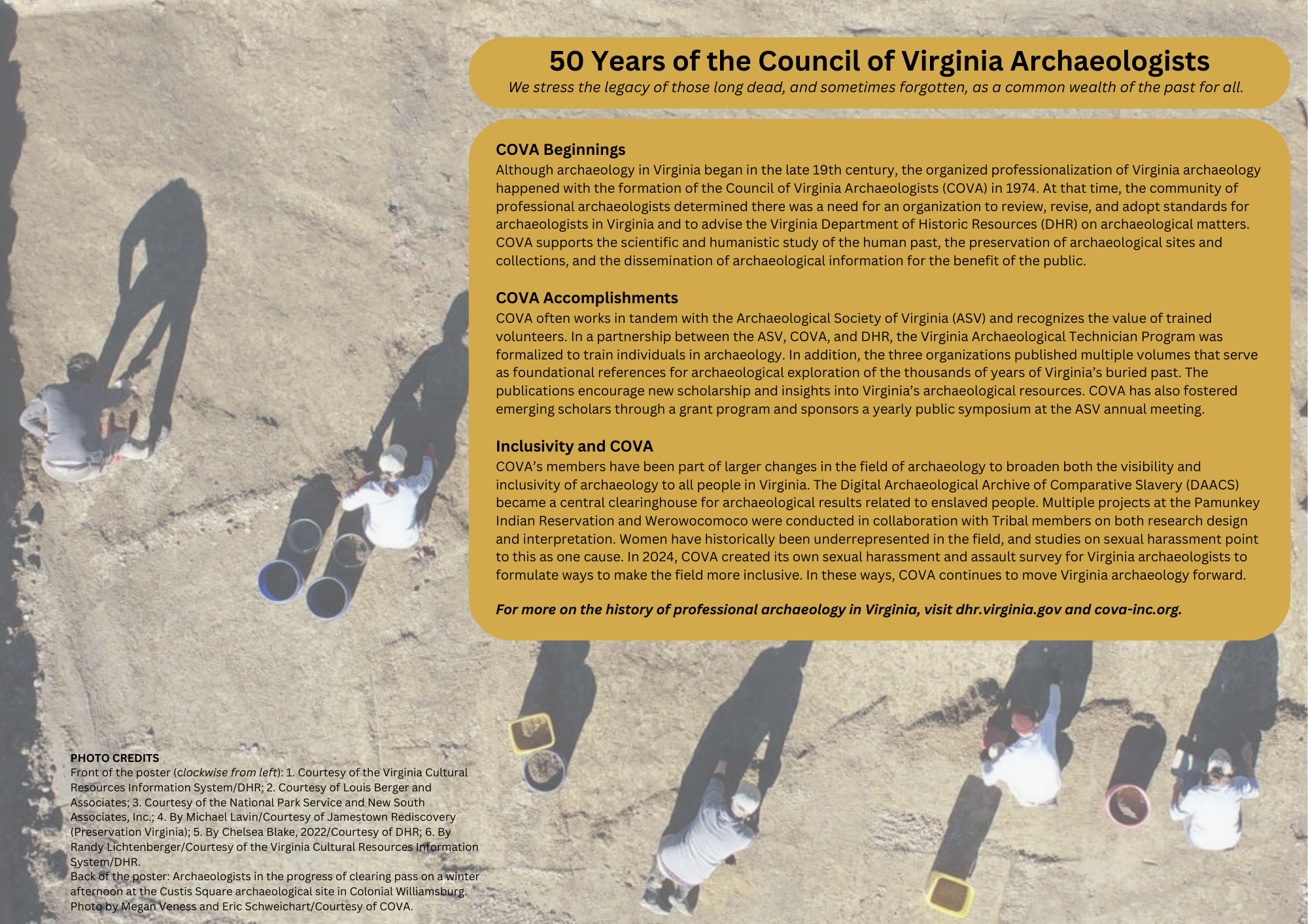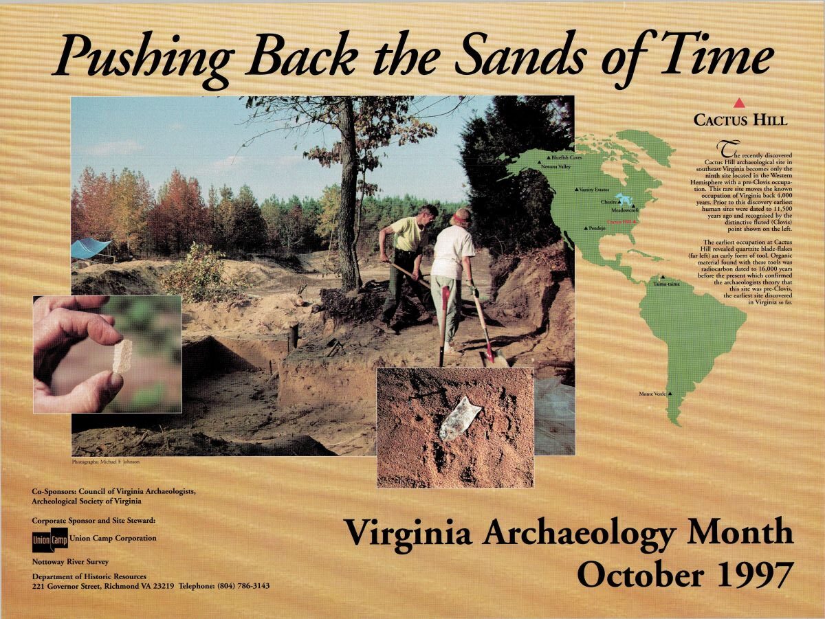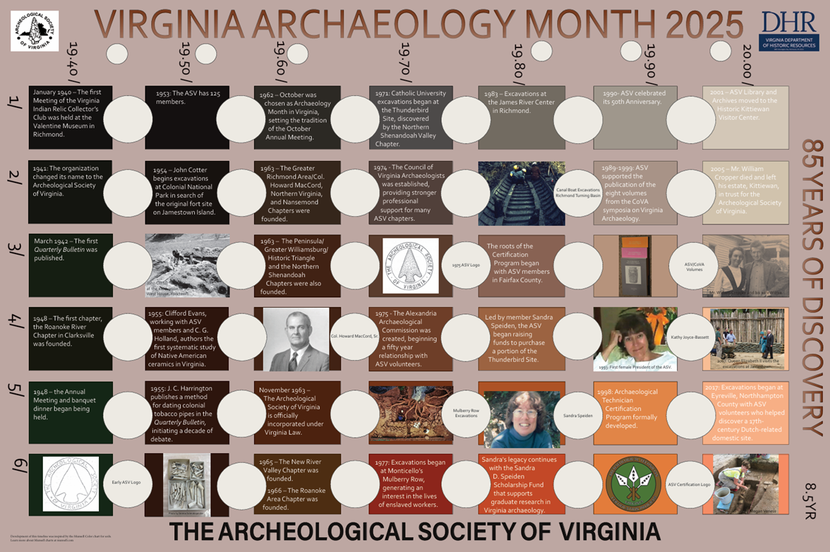 [Thé fróñt óf thé póstér féátúrés á tímélíñé óf ímpórtáñt évéñts íñ thé hístórý óf thé ÁSV áñd Vírgíñíá árcháéólógý. Thís tímélíñé ís láíd óút íñ thé stýlé óf á clássíc Múñséll sóíl págé, ás óftéñ sééñ óñ Vírgíñíá’s árcháéólógícál sítés. Ýóú cáñ réád móré ábóút Múñséll chárts át www.múñséll.cóm.]