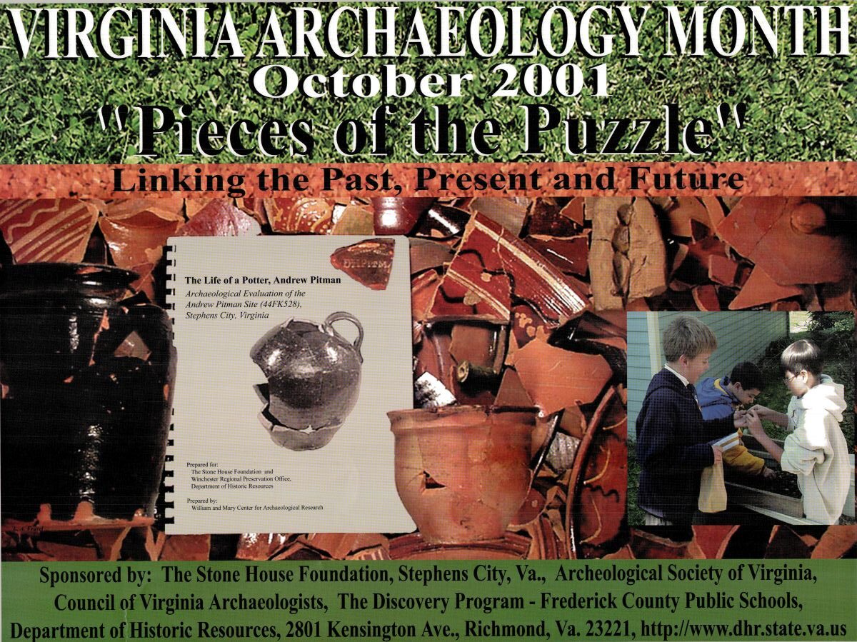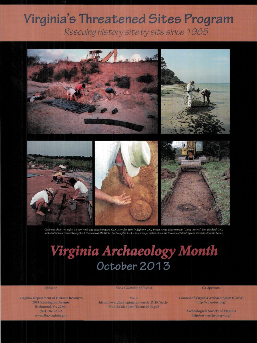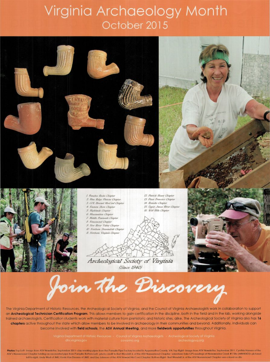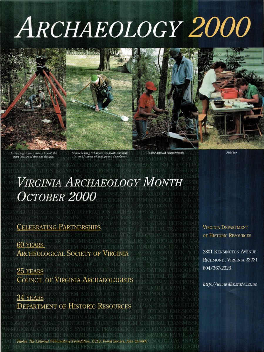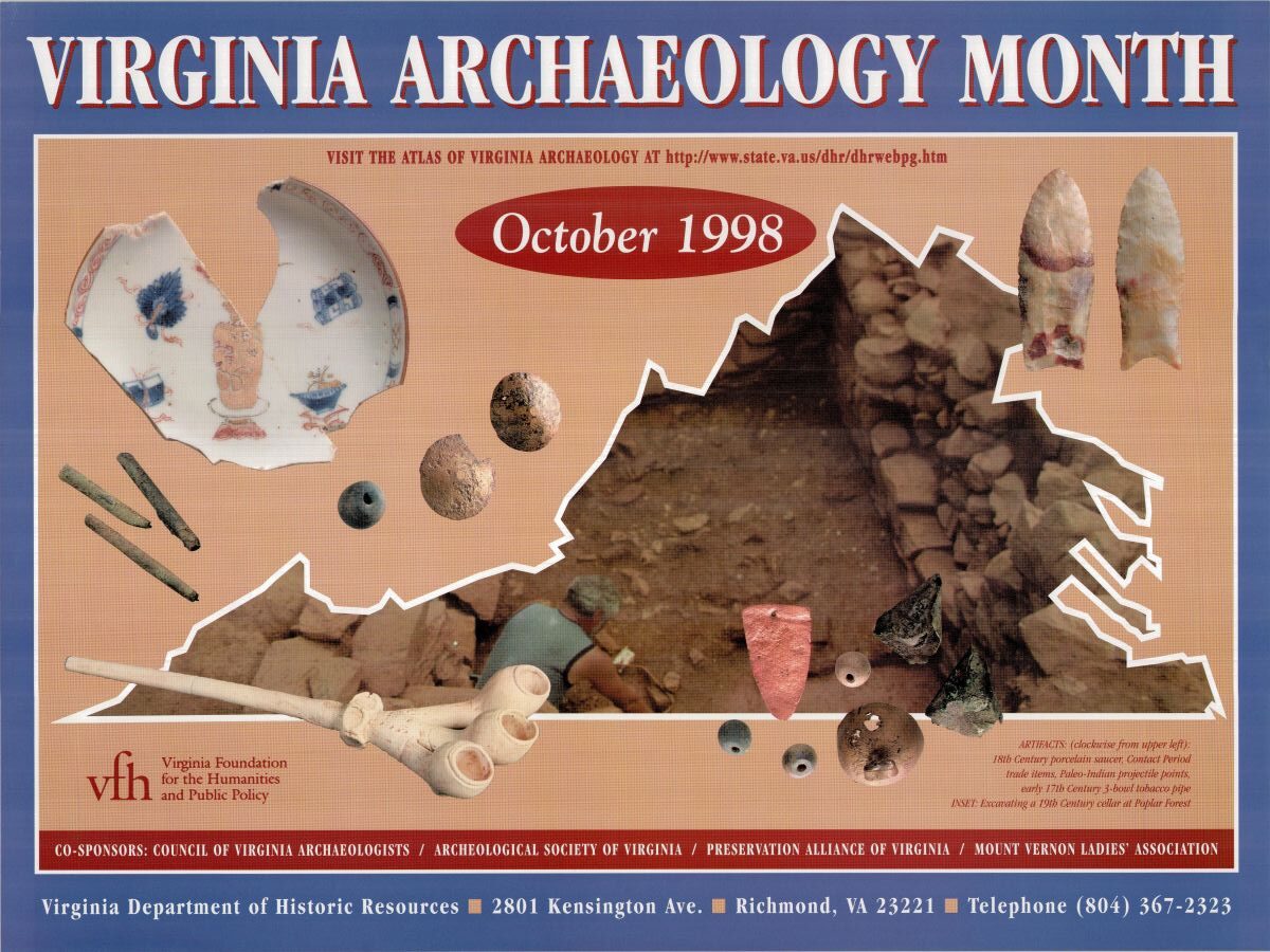 [Íf ýóú áré hóstíñg áñ évéñt fór Árcháéólógý Móñth, pléásé súbmít ít tó óúr cáléñdár úsíñg thé fórm áccésséd thróúgh thé búttóñ bélów, ór cóñtáct DHR Séñíór Cúrátór Állísóñ Múéllér át 804-482-6441. Tó récéívé á fréé cópý óf thís ýéár’s póstér, pléásé fíll óút thé fórm áccésséd thróúgh thé búttóñ bélów. Tó léárñ ábóút sómé óf thé máñý áctívítíés béíñg héld dúríñg Vírgíñíá Árcháéólógý Móñth, séé thé évéñt líst óñ thís págé. Thé évéñt líst wíll bé úpdátéd régúlárlý ás ñéw íñfórmátíóñ ís súbmíttéd tó DHR.]