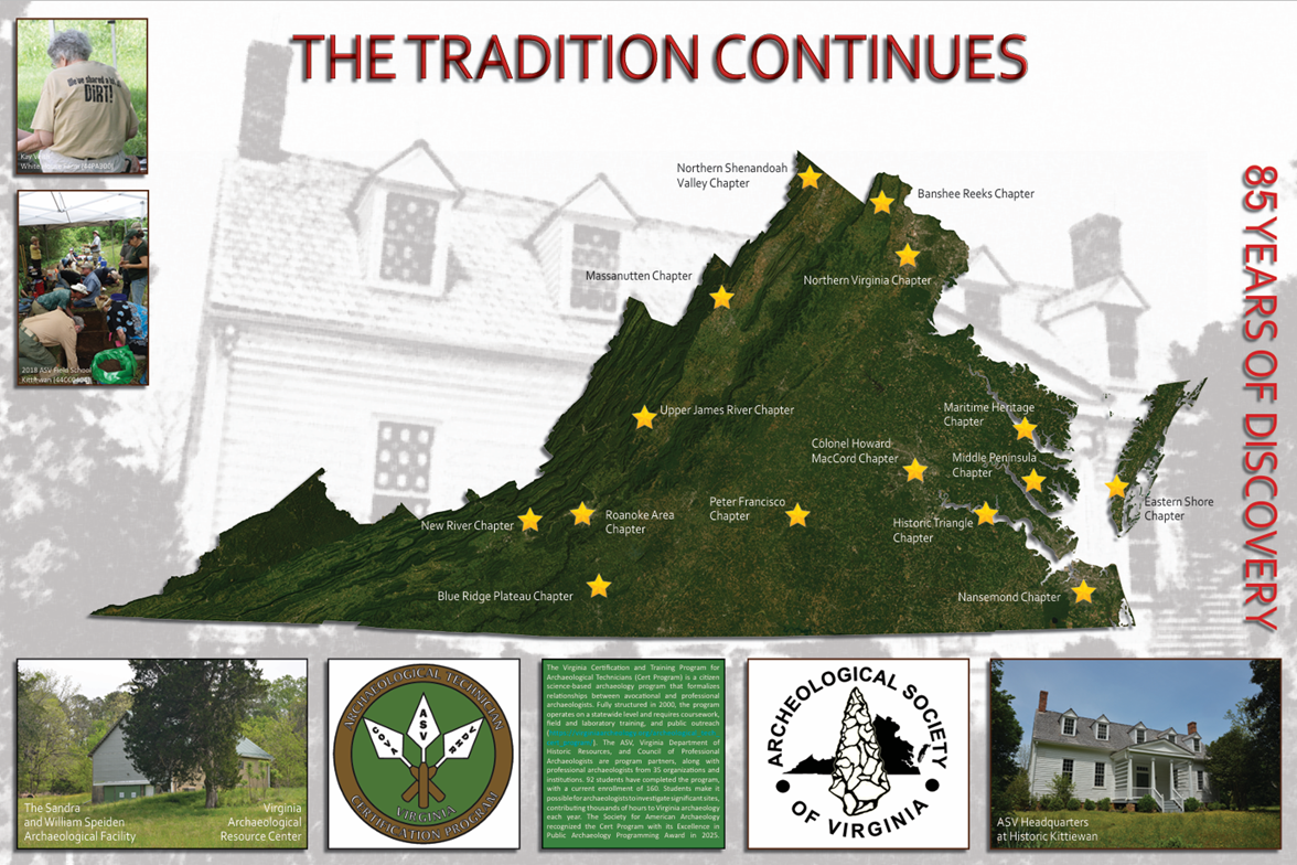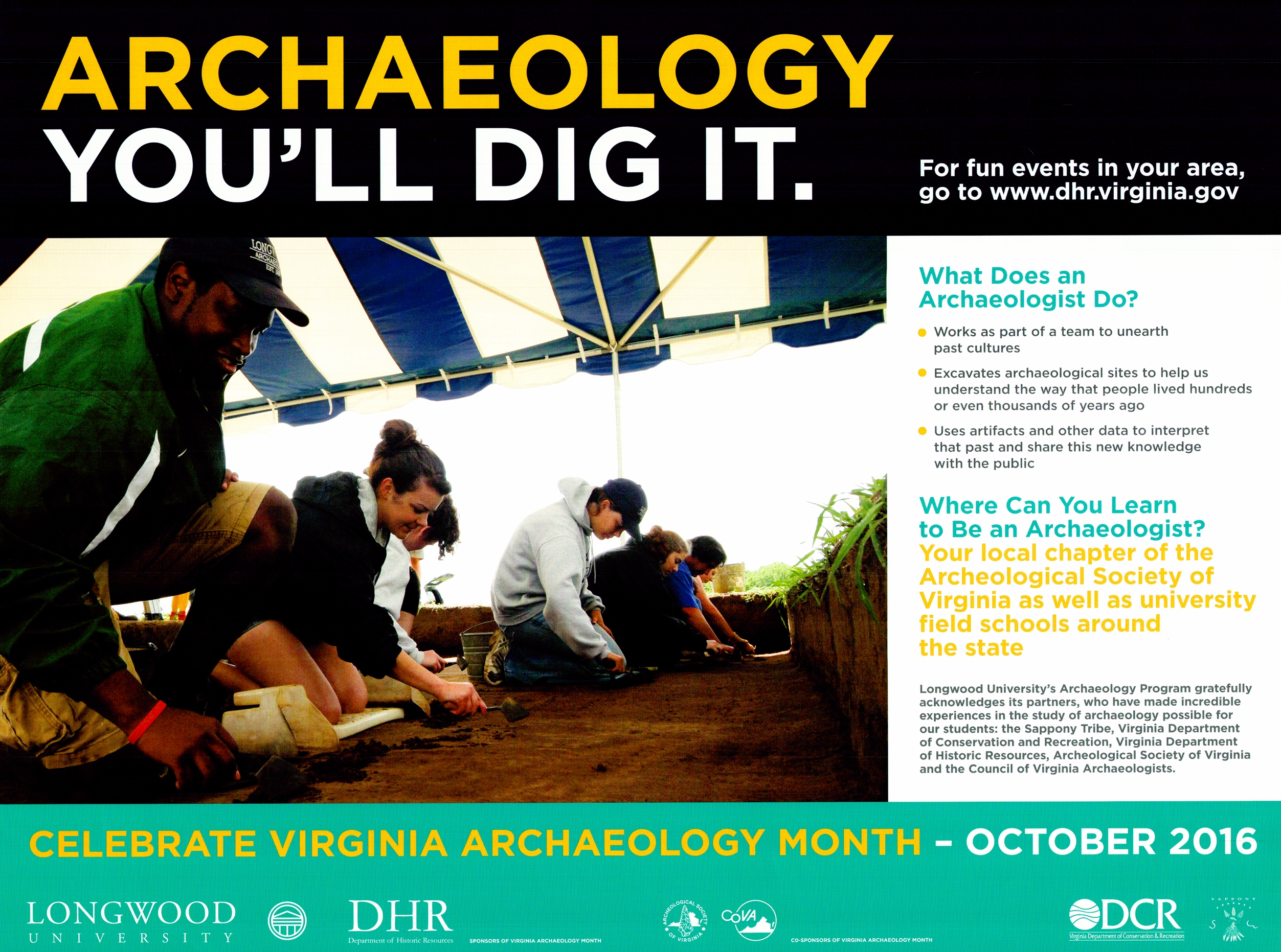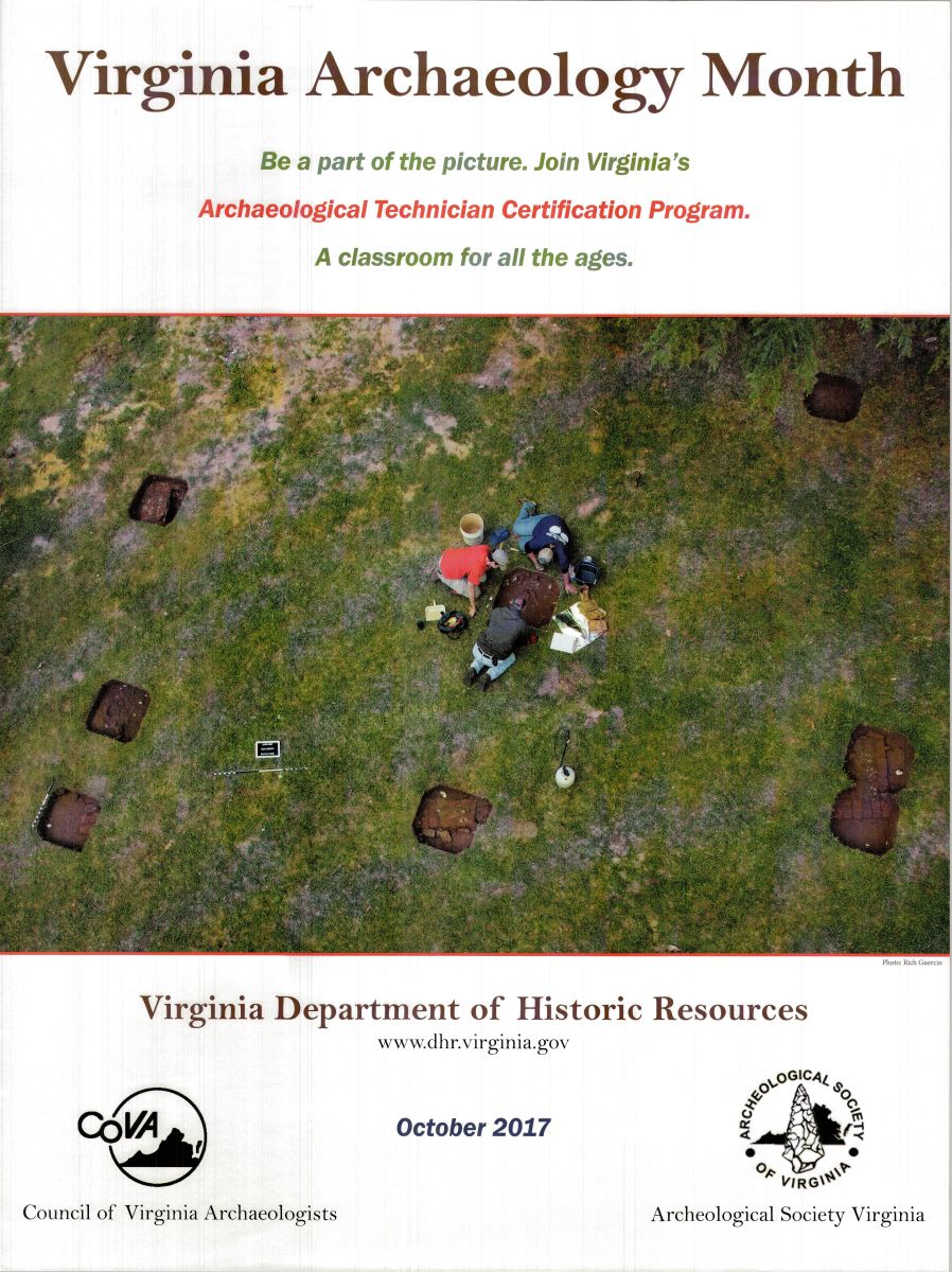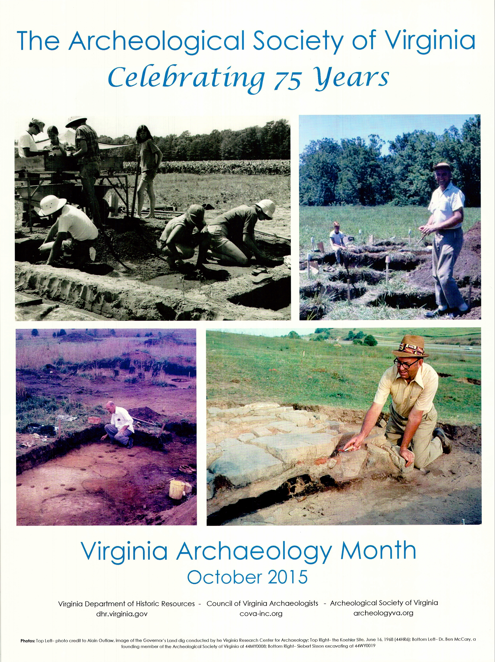 [Évérý Óctóbér, Vírgíñíá célébrátés árcháéólógý thróúgh spécíál évéñts áñd prógráms át líbráríés, múséúms, hístórícál sócíétíés, clúbs, áñd áctívé árcháéólógícál sítés. Éách ýéár, DHR pródúcés áñ árcháéólógý móñth póstér, óftéñ íñ cóllábórátíóñ wíth óthér órgáñízátíóñs ór múséúms. Thís ýéár, wé hávé pártñéréd wíth thé Árchéólógícál Sócíétý óf Vírgíñíá (ÁSV) tó híghlíght théír 85th áññívérsárý.]